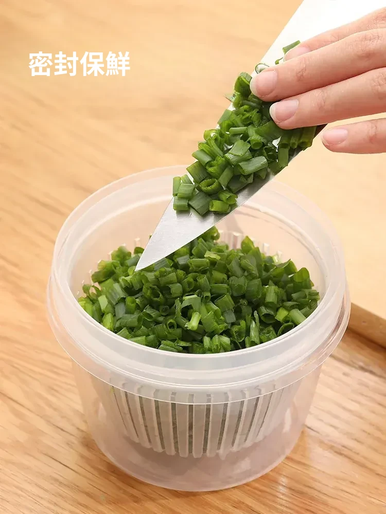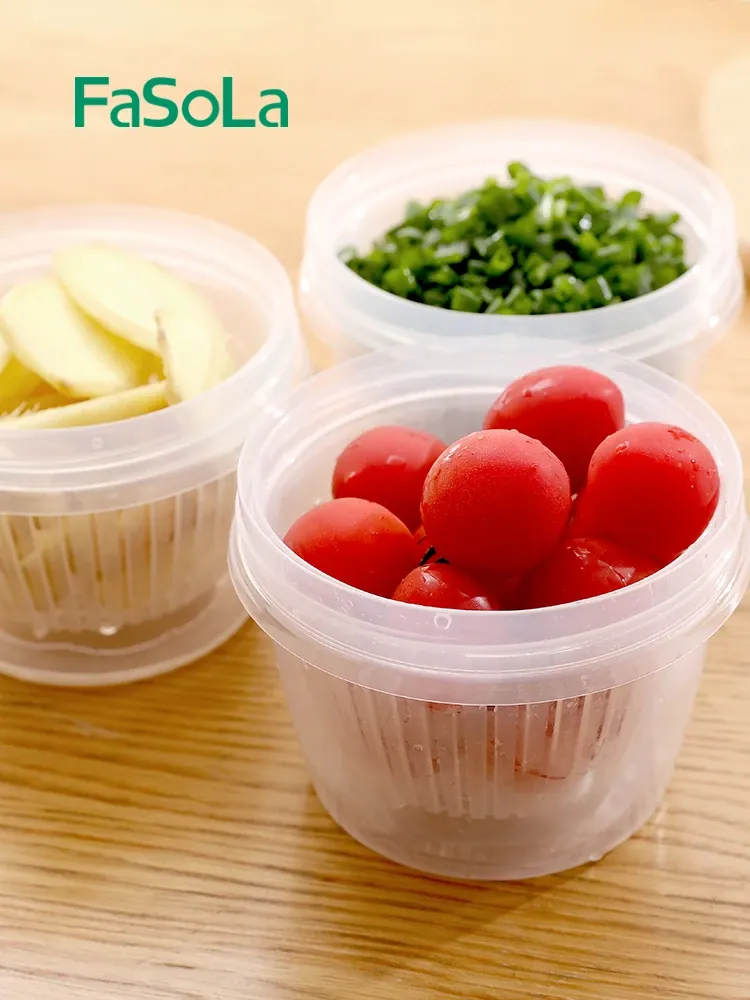 FaSoLaキッチン用ネギ、生姜、ニンニク用水切り調理ボックス - 蓋付き・密閉設計で味移りなし!フルーツや食材の冷蔵保存に最適な収納ボックス。