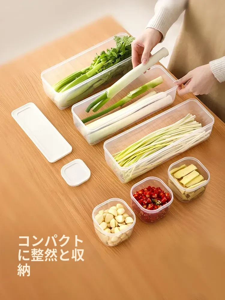 FaSoLa 冷蔵庫用収納ボックス 大葱・小葱・香菜専用 新鮮保存ボックス 食品グレードの葱・生姜・ニンニク密封ボックス で、食材を長持ちさせ、キッチンをスッキリ整理!