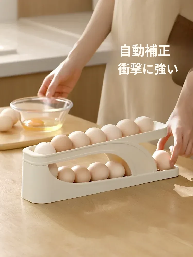 FaSoLaエッグストレージボックス|キッチン・家庭用|冷蔵庫サイドドアに最適な食品グレードの新鮮保存ボックス|転がる卵用スロープ式エッグラックで、卵をスムーズに取り出せます!