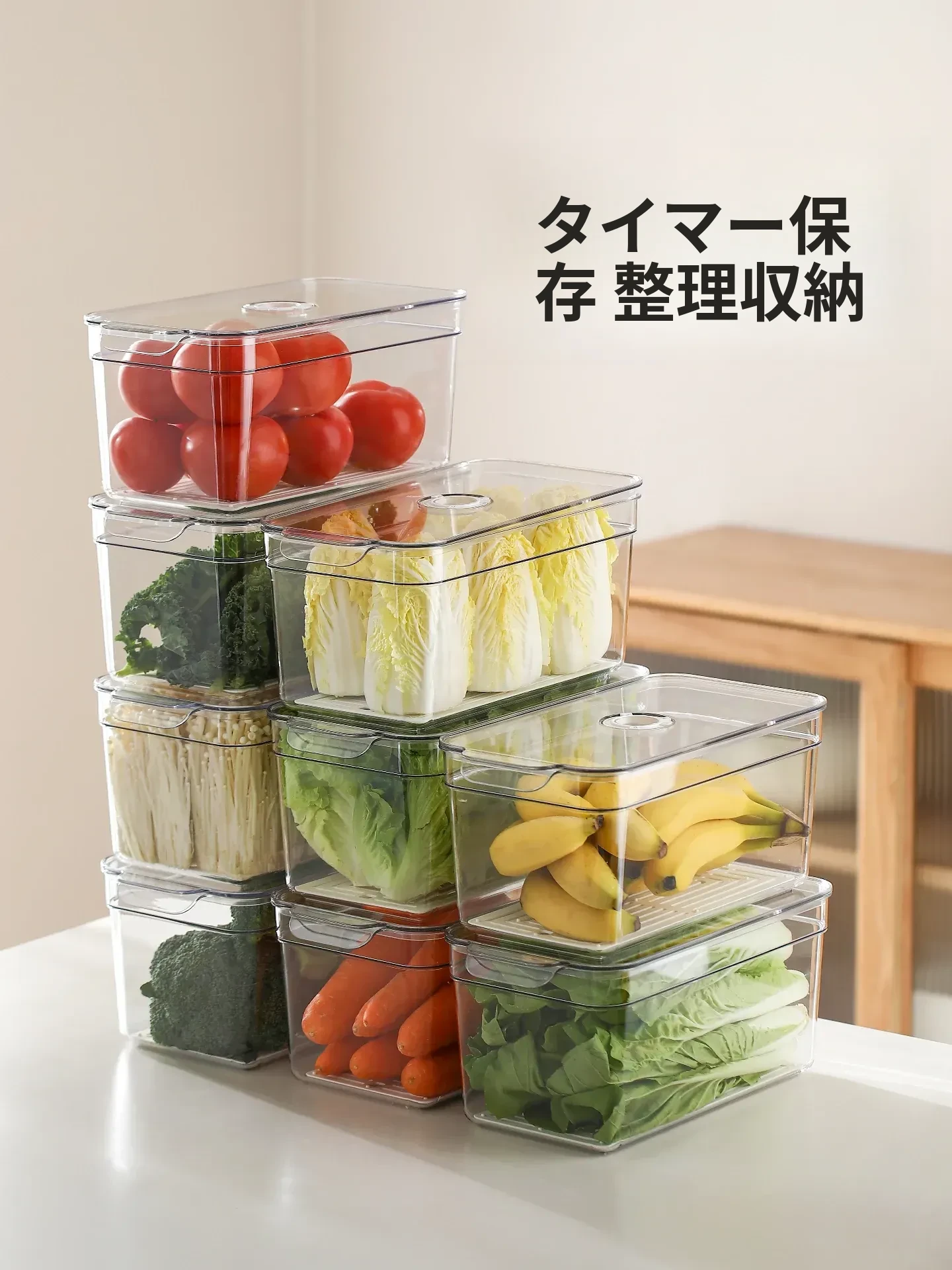 冷蔵庫専用食品保存ボックス | 大容量で野菜・果物・卵を整理整頓!冷凍分けもできる安全な食品グレード素材使用!新鮮さを保ちながらスッキリ収納!