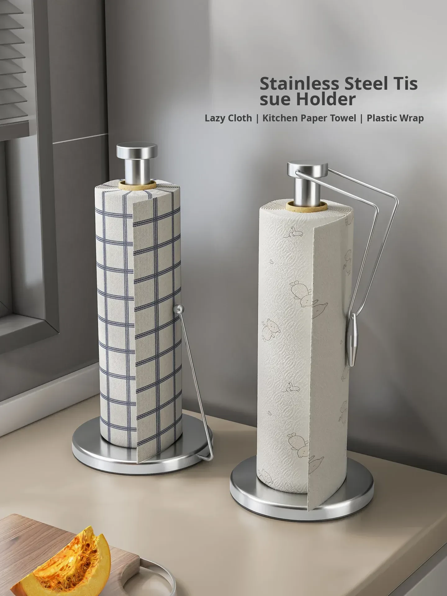 Creative Freestanding Paper Towel Holder - Stainless Steel Multi-Functional Organizer for Kitchen, No Drill Installation, Space-Saving Design