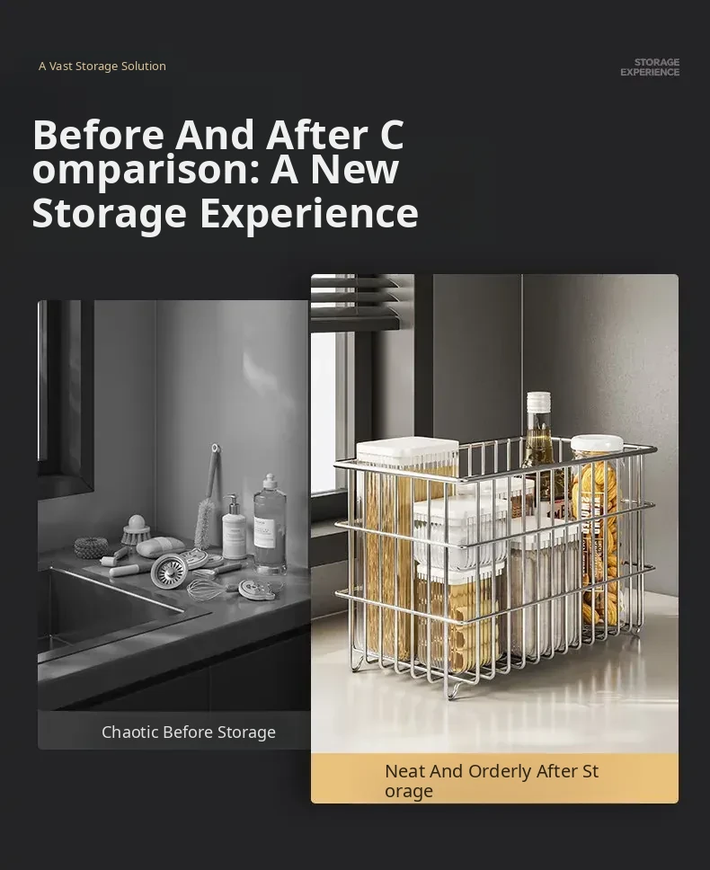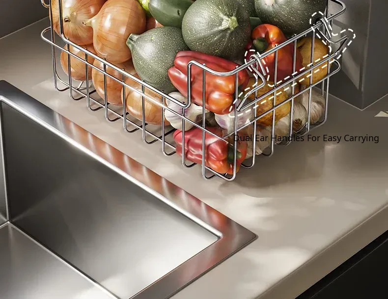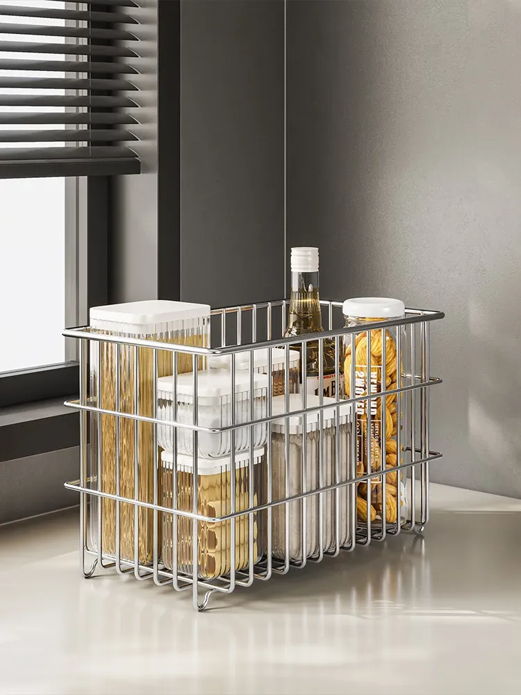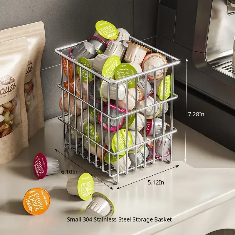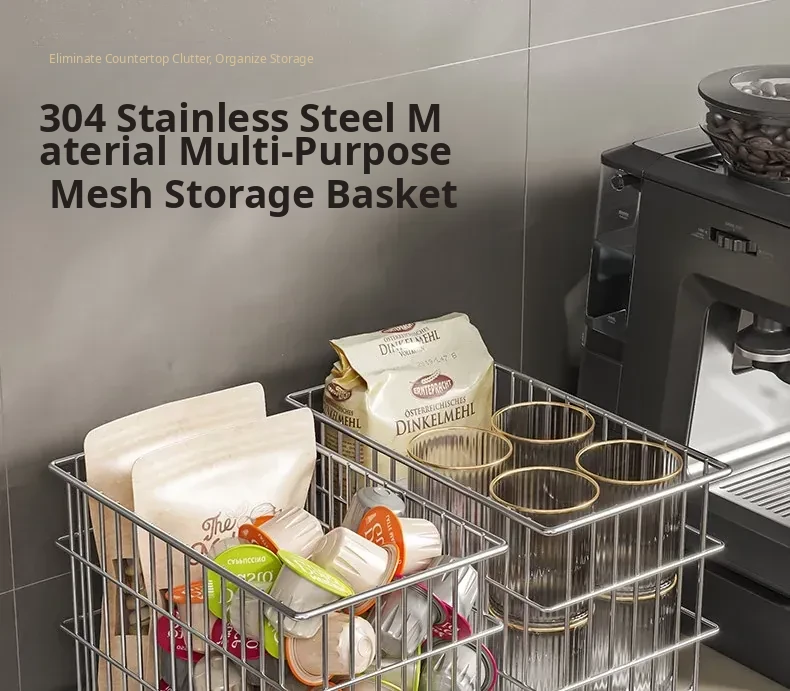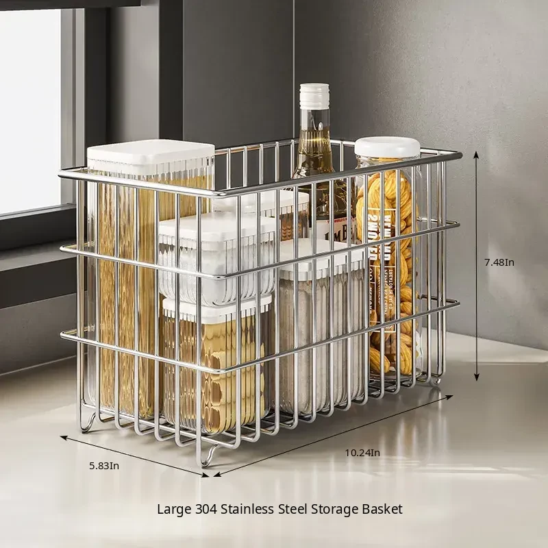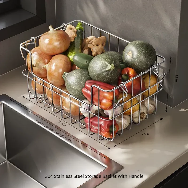 304 Stainless Steel Storage Basket for Kitchen and Living Room - Versatile Organizer for Fruits, Vegetables, Snacks, and Miscellaneous Items - Stylish and Durable Design for Home Organization