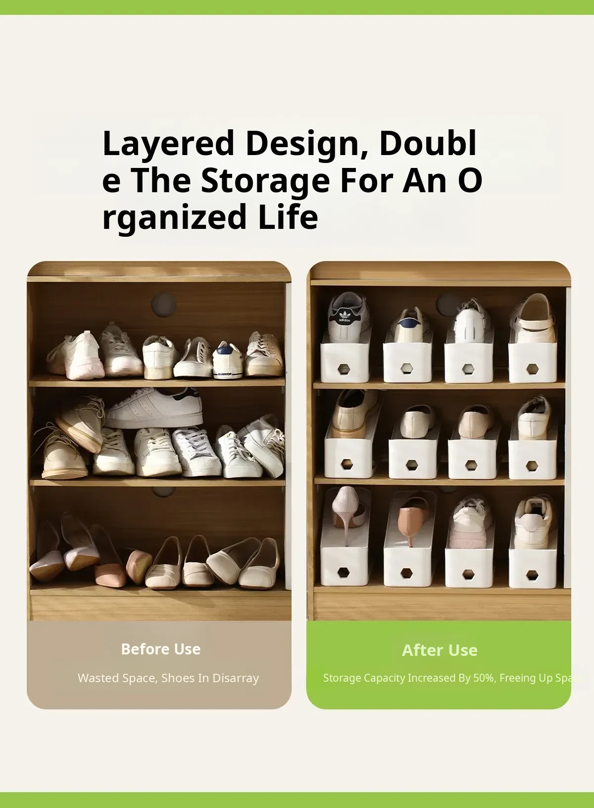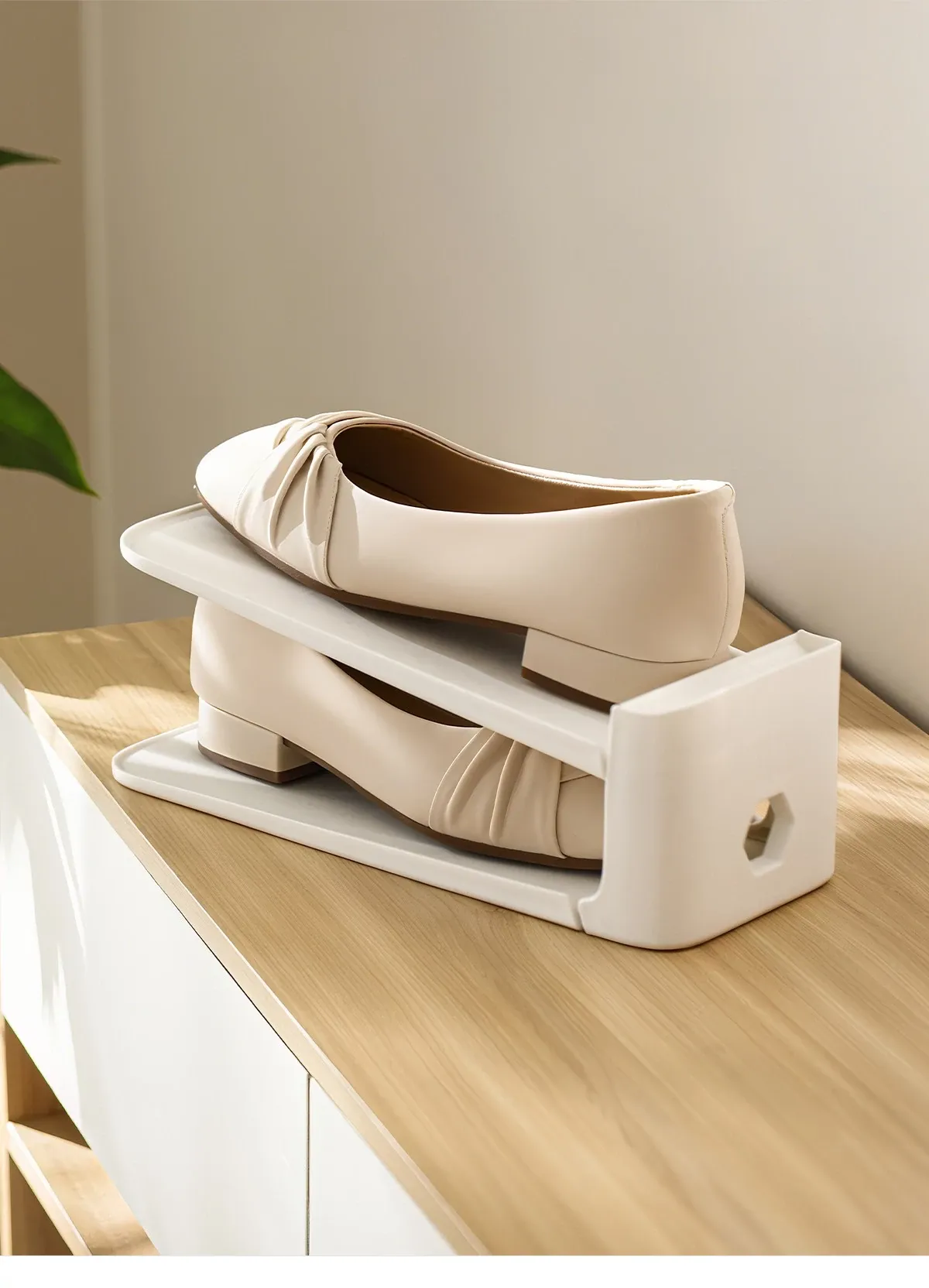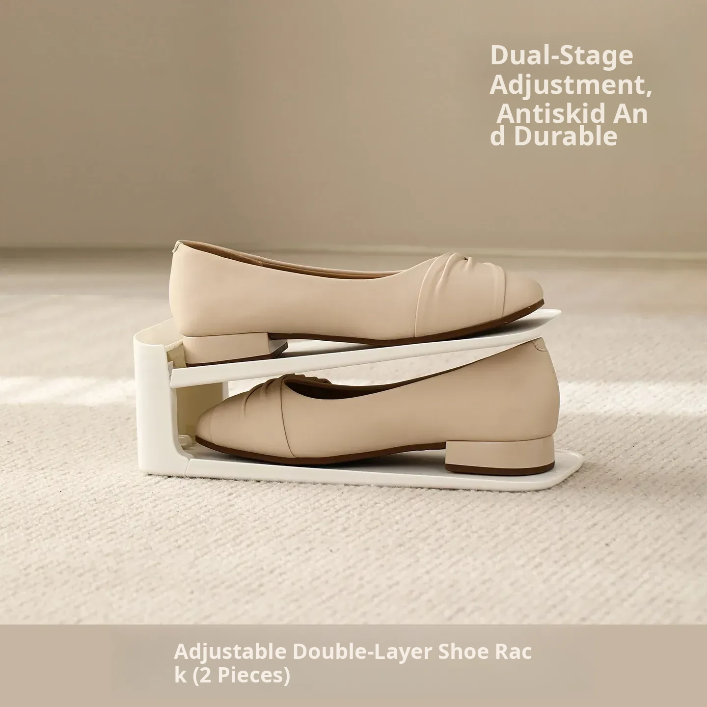 FaSoLa Adjustable Double-Layer Shoe Rack - Space-Saving Home Shoe Organizer with Tiered Shelves for Efficient Storage and Easy Access to Your Footwear