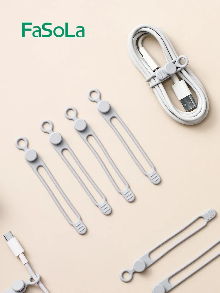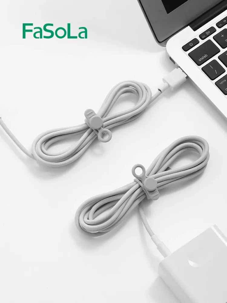 FaSoLa Cable Organizer Clips - Silicone Velcro Straps for Tangle-Free Cable Management, Multi-Functional Tie for Home and Office Use