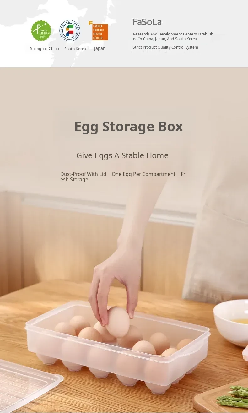 FaSoLa Egg Storage Box - Refrigerator Organizer, Durable and Safe Kitchen Egg Holder, Perfect for Keeping Eggs Fresh and Tidy