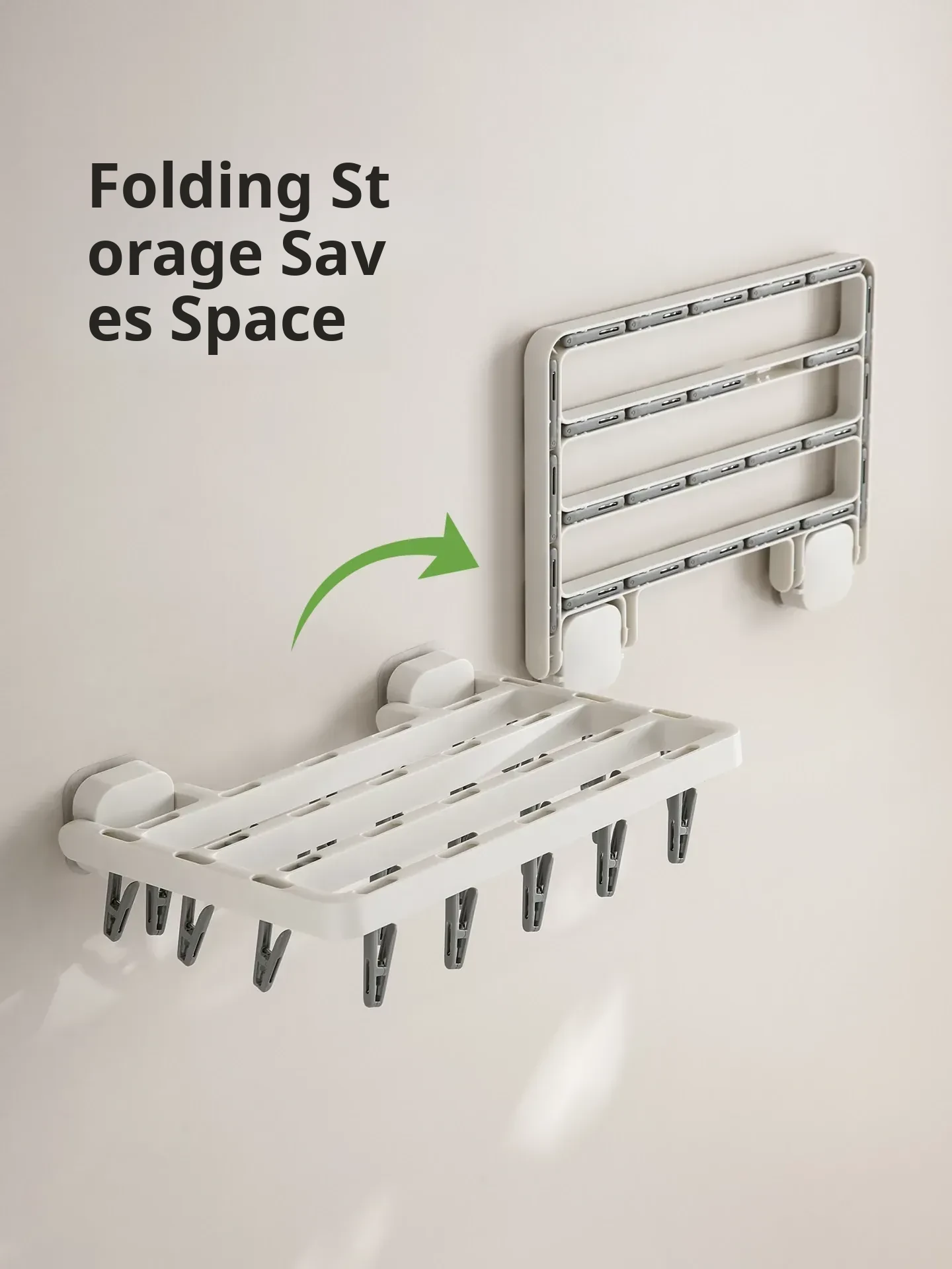 Small Size - Folding Drying Rack [White] with Serrated Clips / Secure Grip