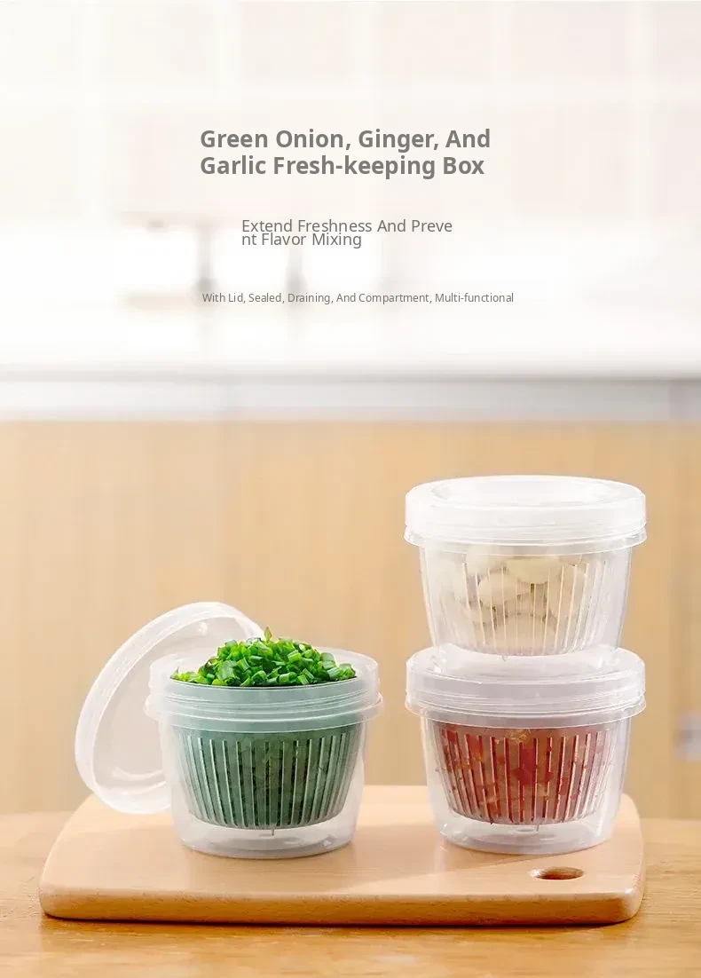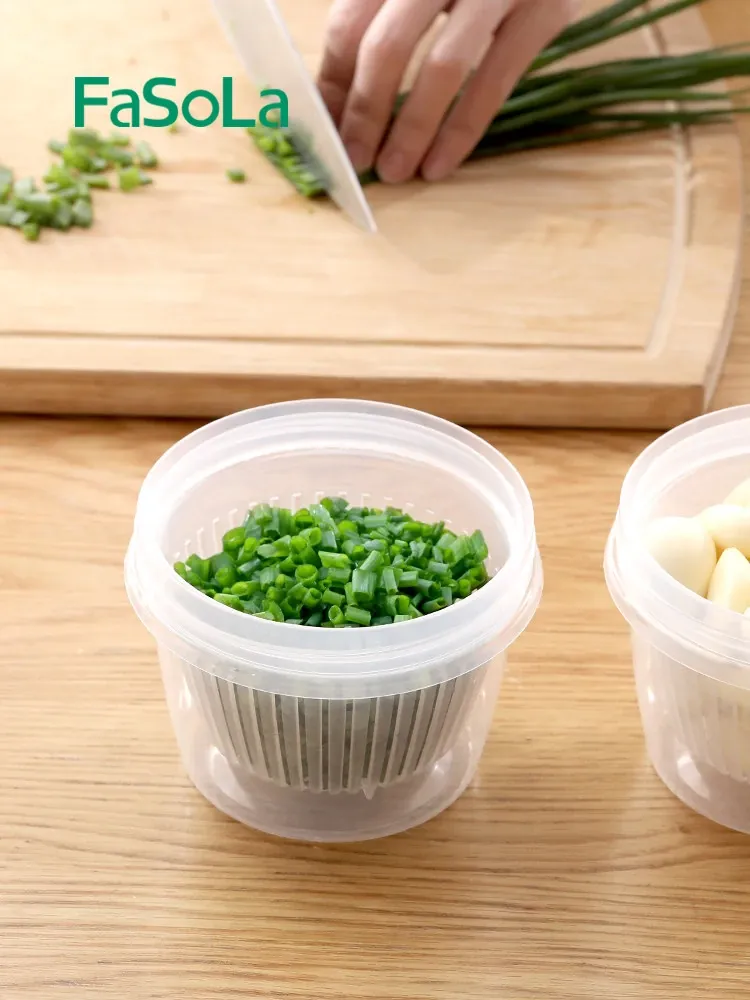 FaSoLa Food-Grade Herb Storage Box for Garlic, Ginger, and Onion - Refrigerator Organizer with Drainage for Fresh Vegetables and Fruits - Ideal Freezer Storage Solution for Your Kitchen
