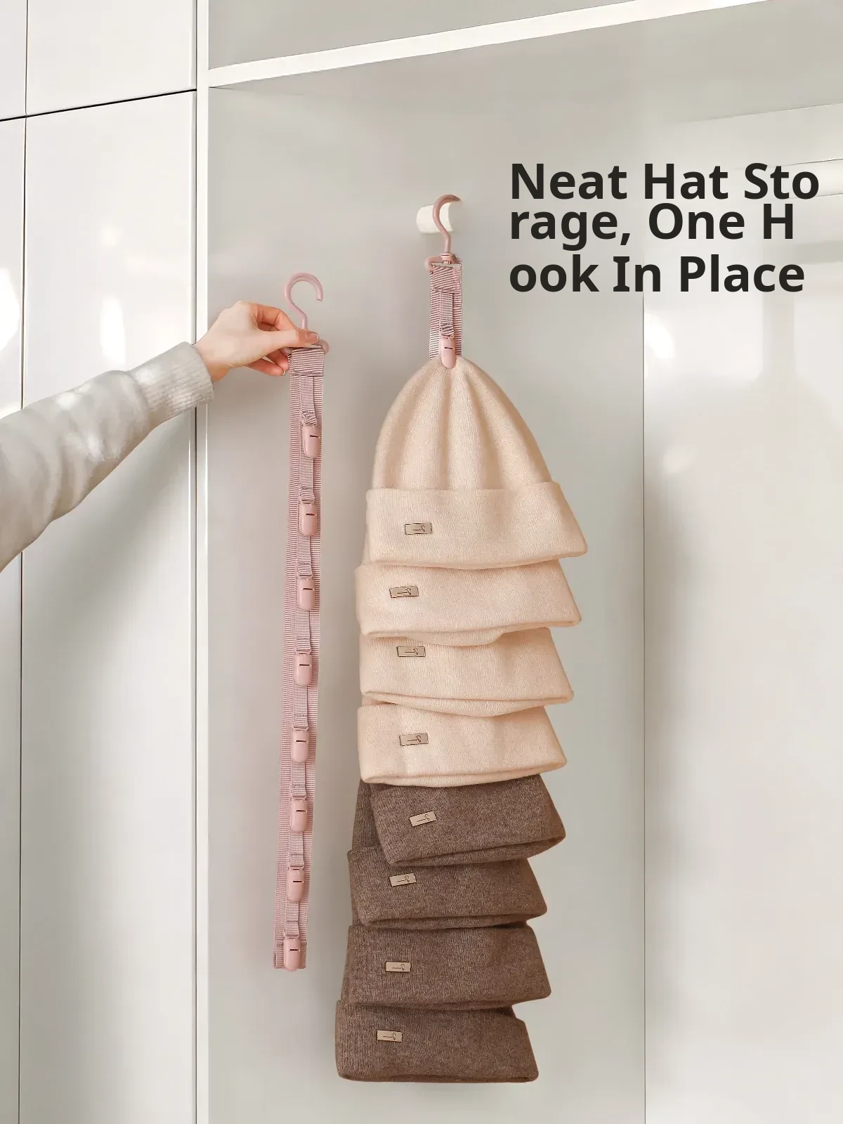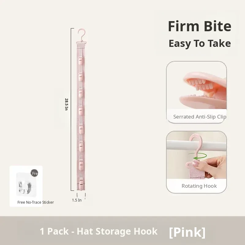 1 Pack - Hat Storage Hook [Pink] 8 Clips/Can Be Hung Easily