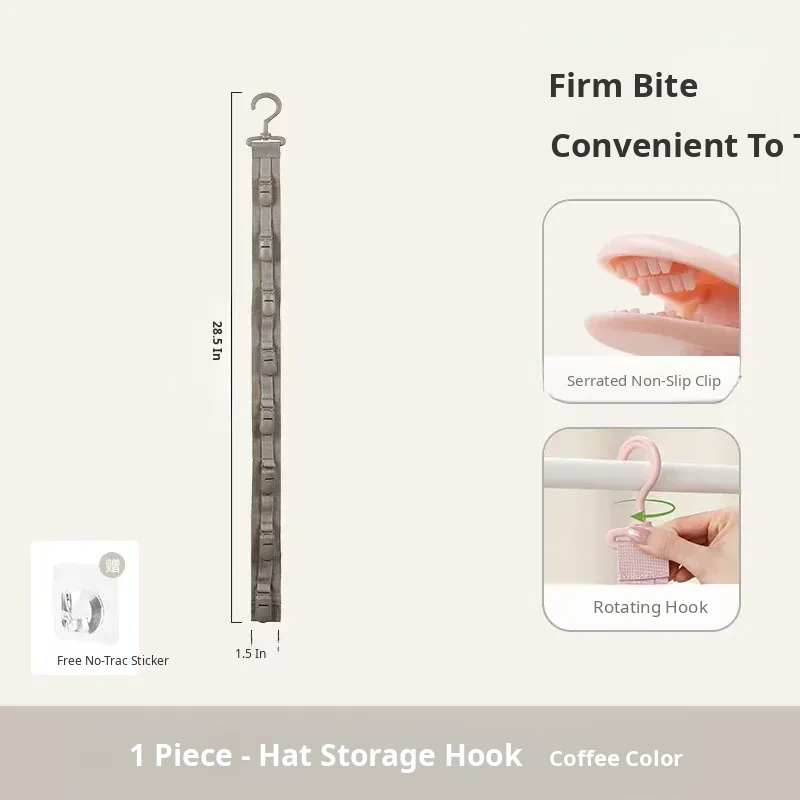 1 Pack - Hat Storage Hook [Coffee Color] Serrated Clamp/Firm Bite