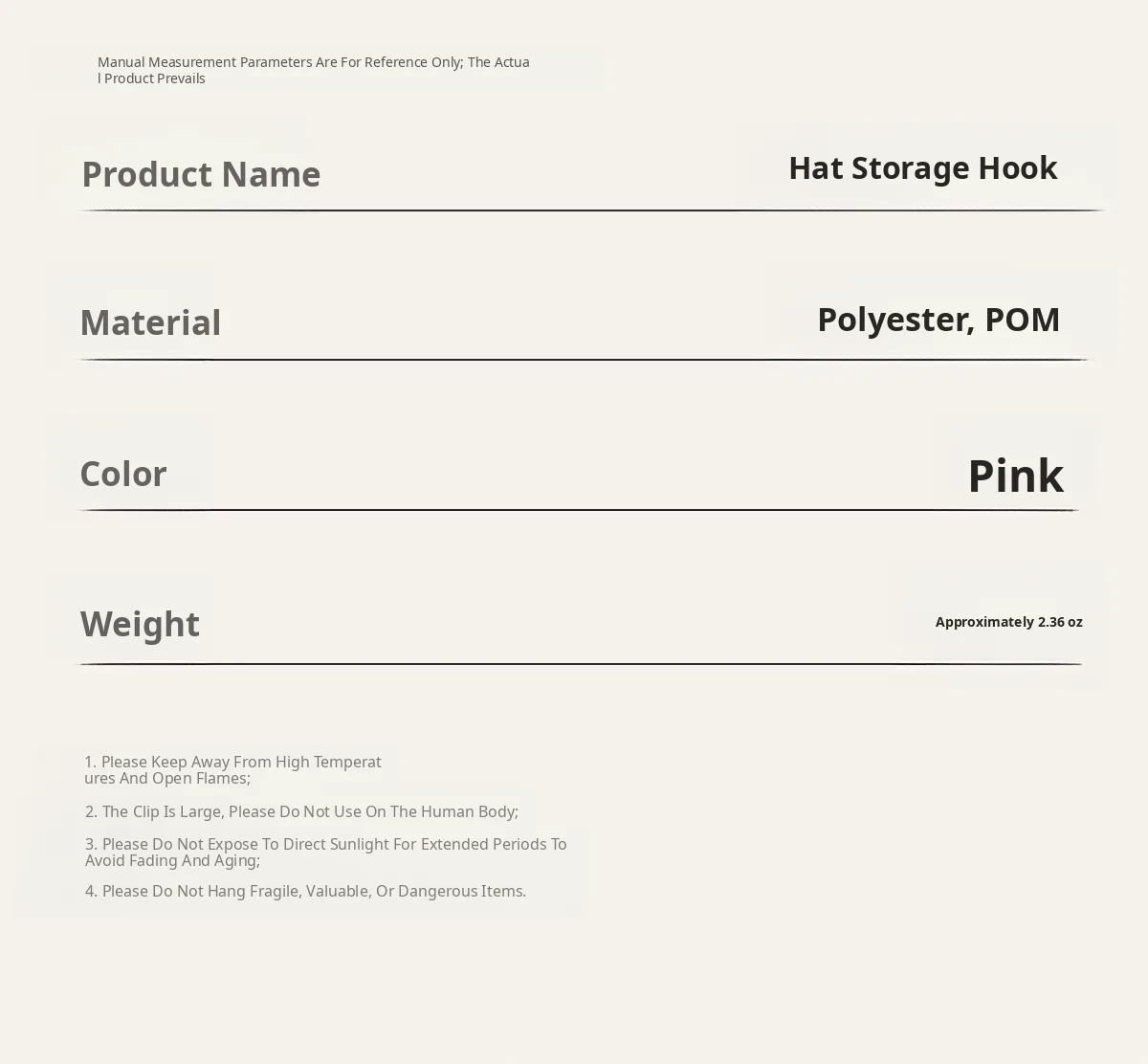 2 Pack - Hat Storage Hook [Pink + Coffee Color] Two Colors Matching