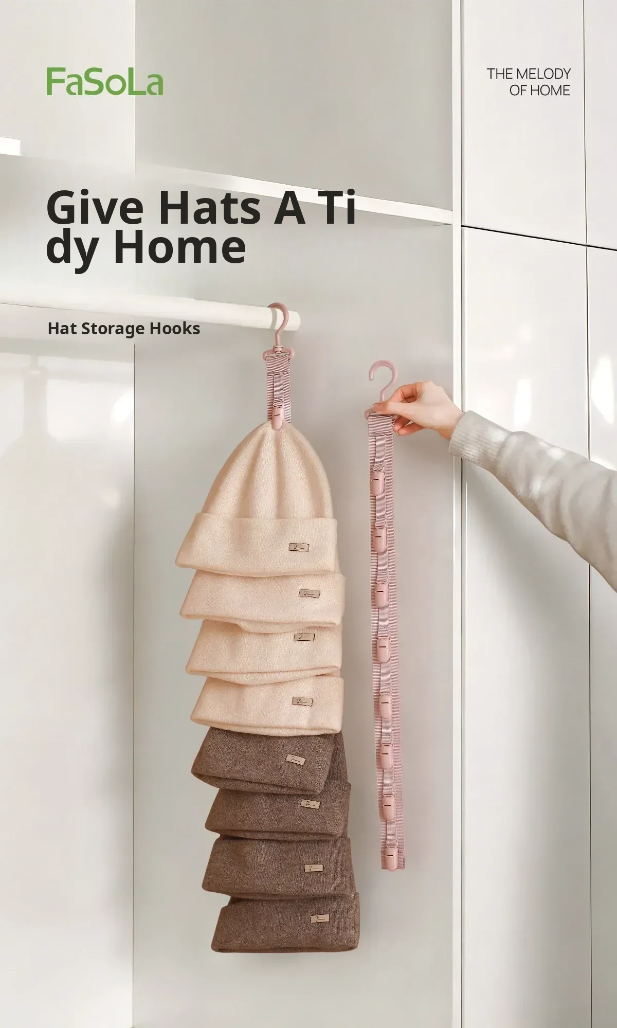 FaSoLa Hat Hook Organizer - No Drill, Deformation-Free Storage Solution for Home, Door-Mounted Baseball Cap Clips for Closet - Keep Your Caps Neat and Accessible!