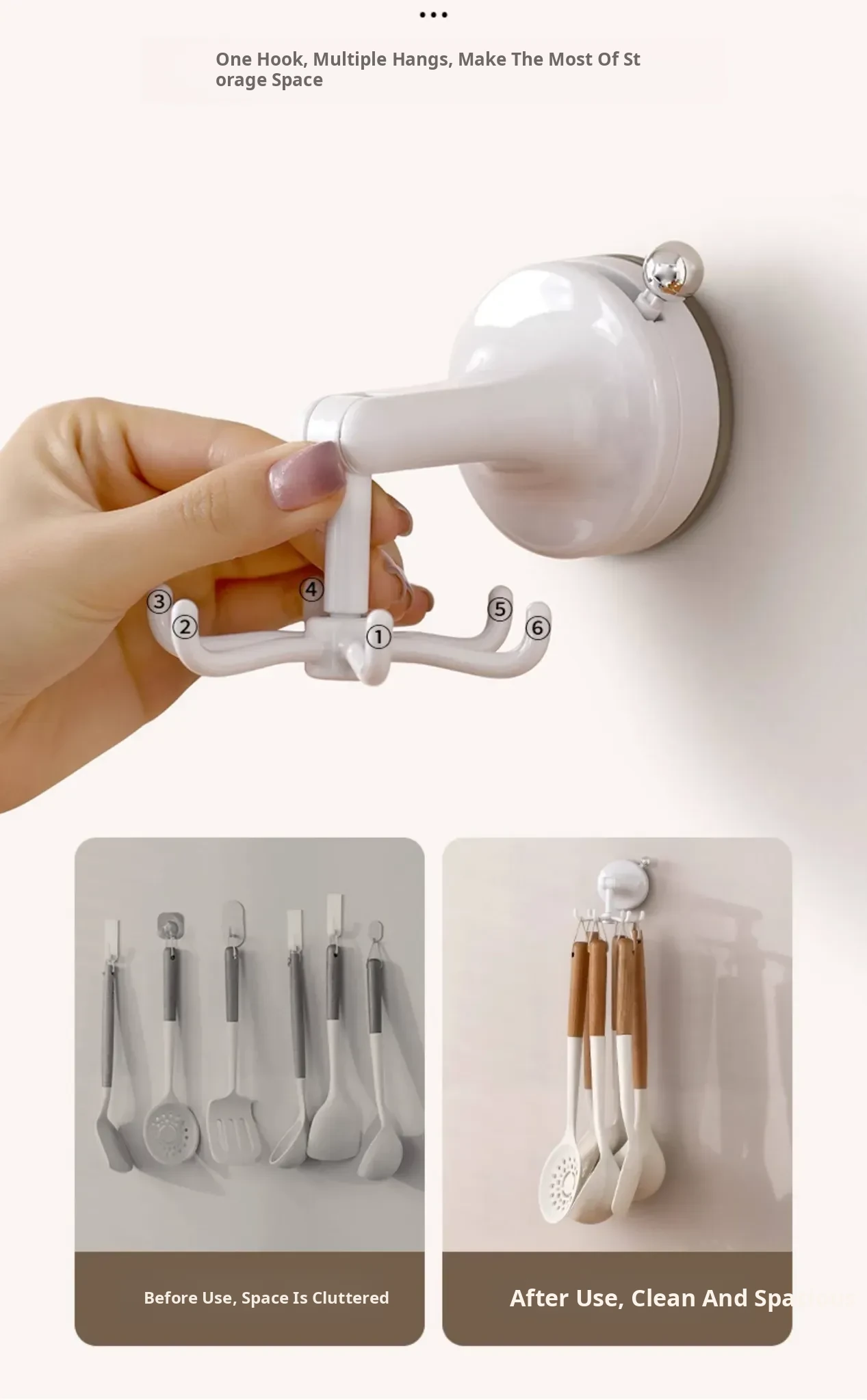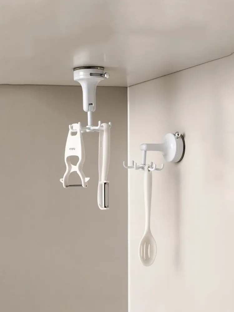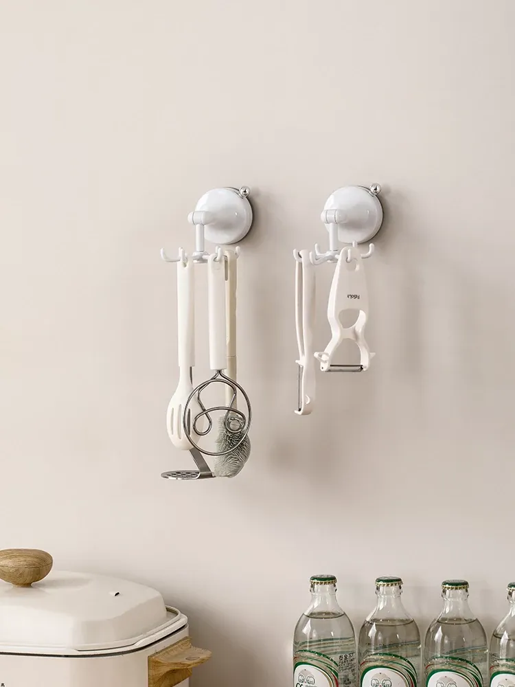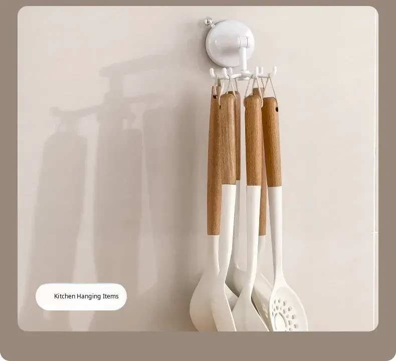 FaSoLa Kitchen Suction Cup Six-Claw Rotating Hook Rack – No Drill Wall-Mounted Organizer for Cooking Utensils, Spatulas, and Spoons – Space-Saving Solution for a Tidy Kitchen