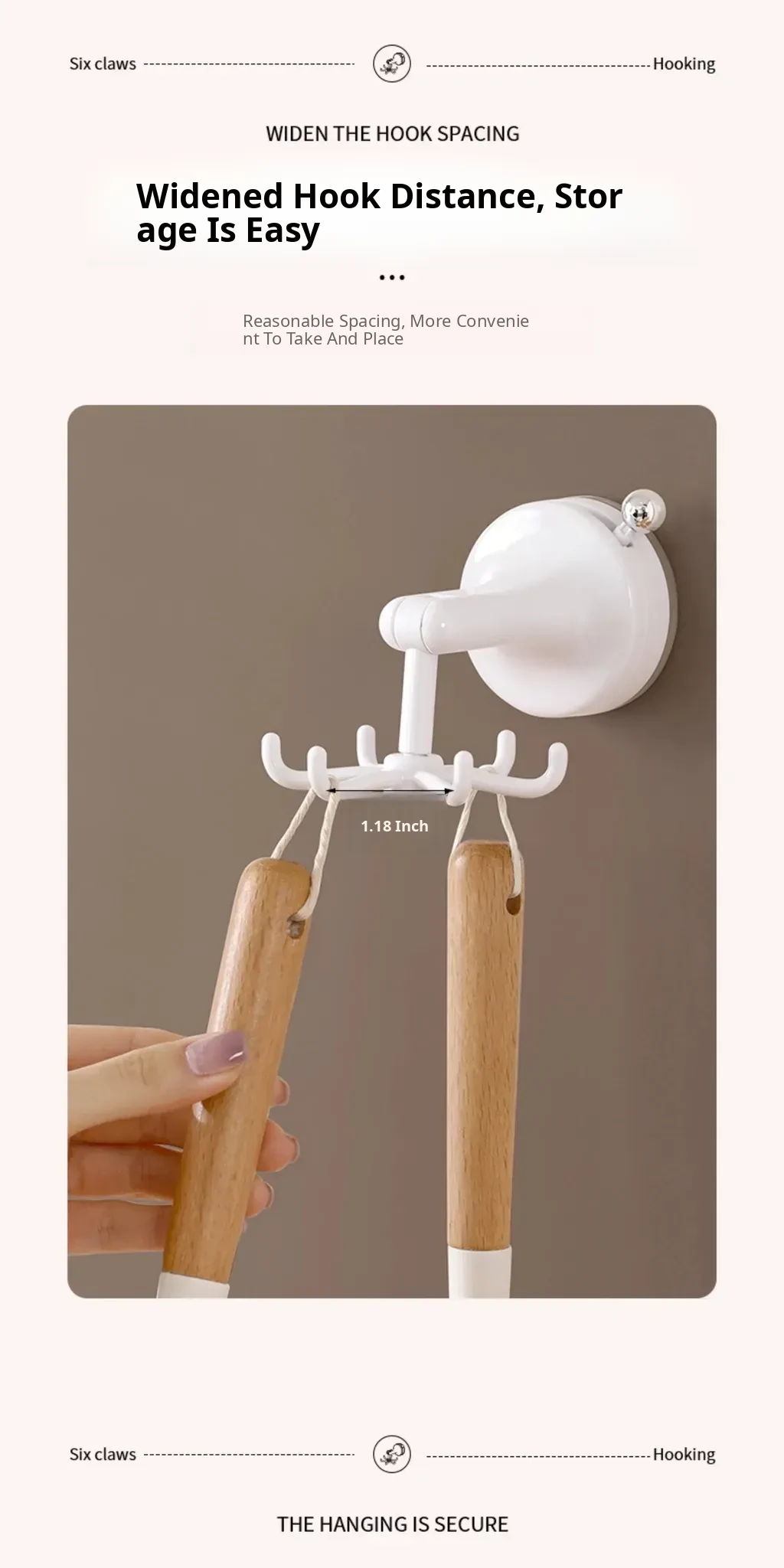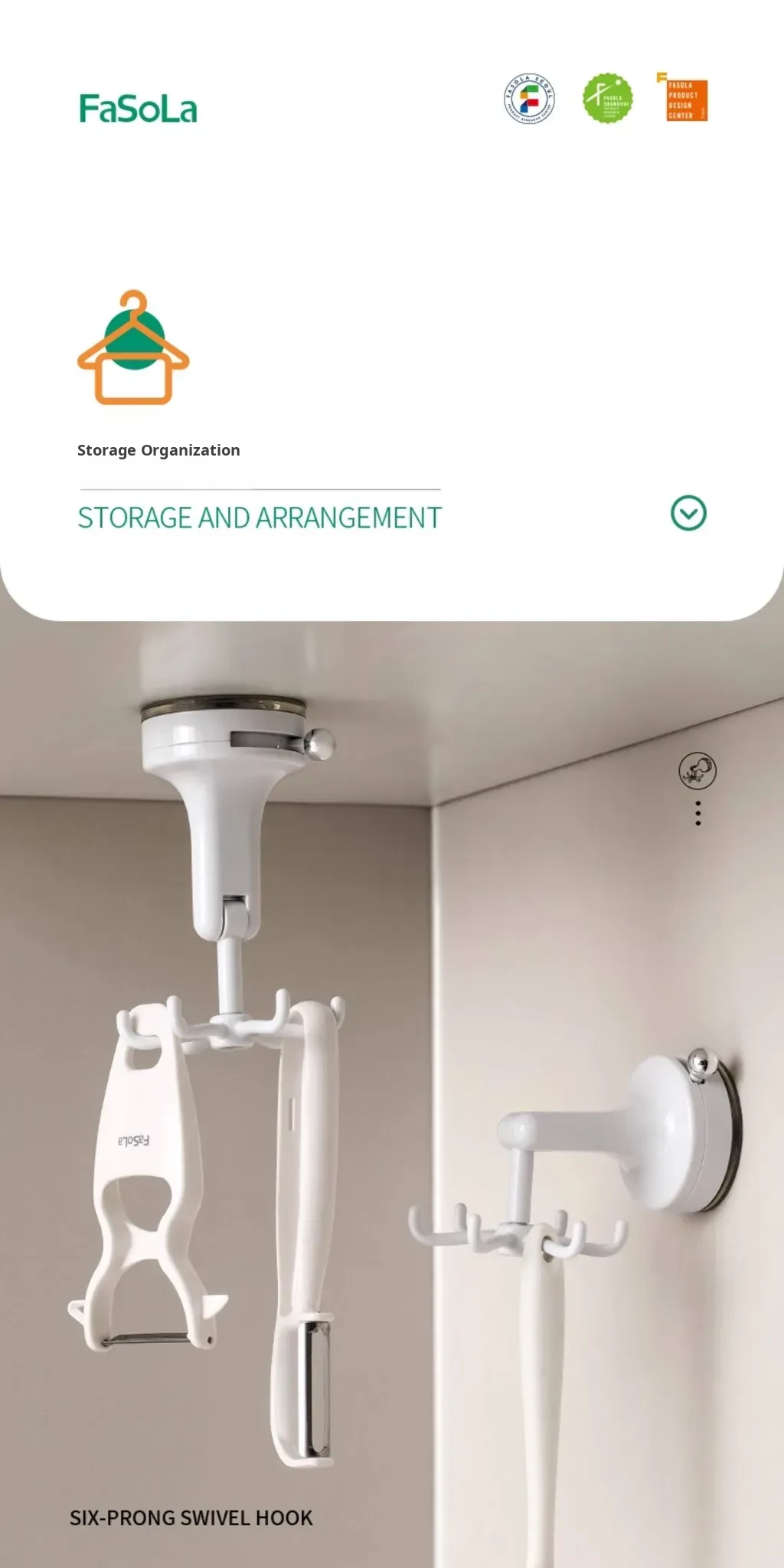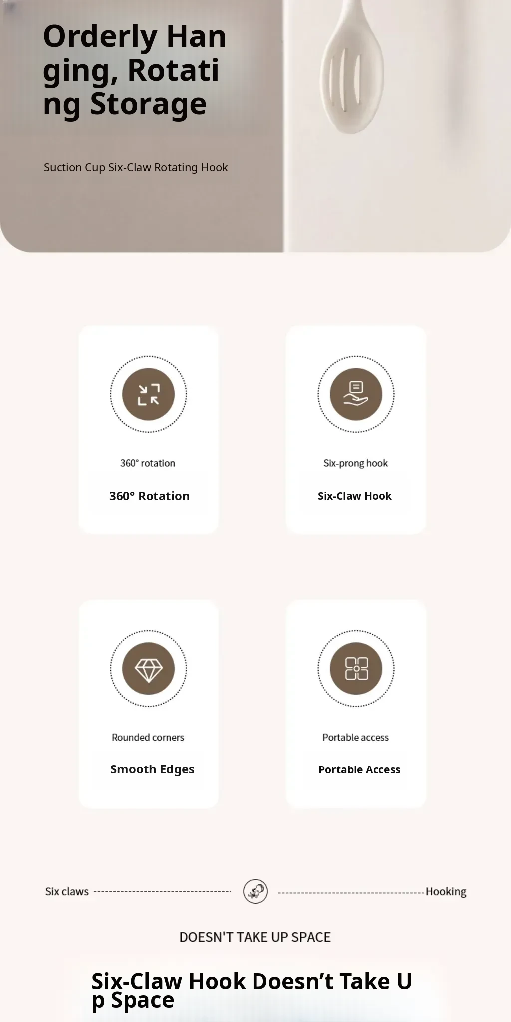 FaSoLa Kitchen Suction Cup Six-Claw Rotating Hook Rack – No Drill Wall-Mounted Organizer for Cooking Utensils, Spatulas, and Spoons – Space-Saving Solution for a Tidy Kitchen