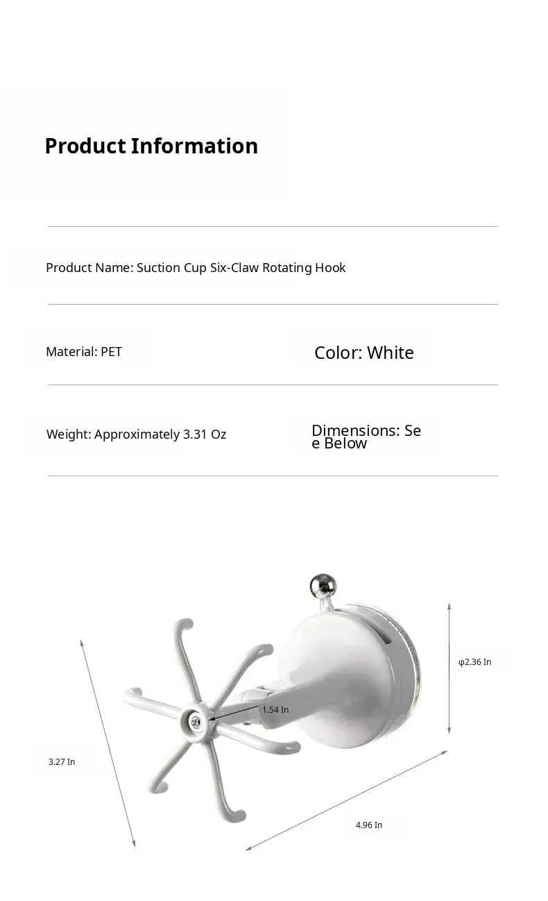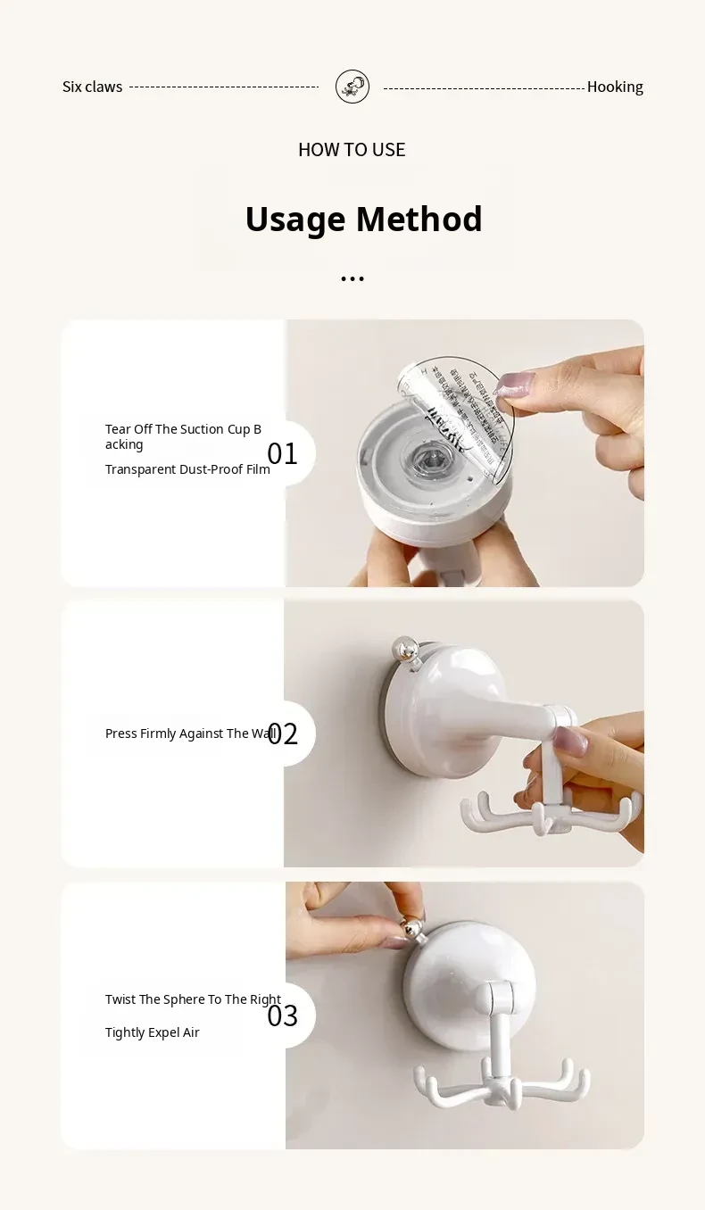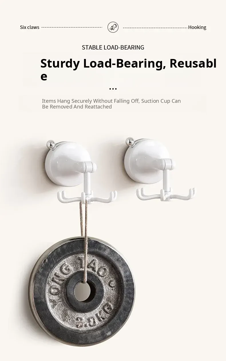 Suction cup six-claw swivel hook