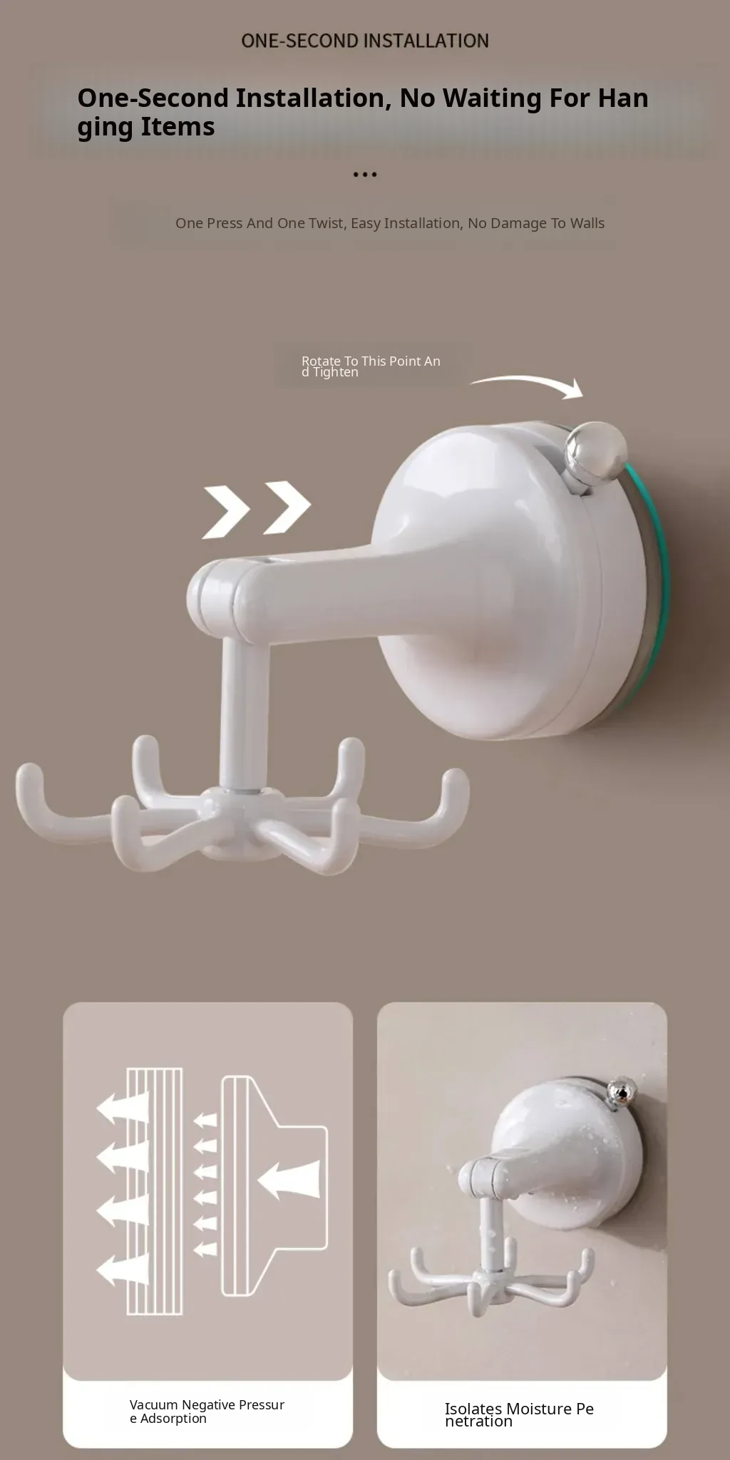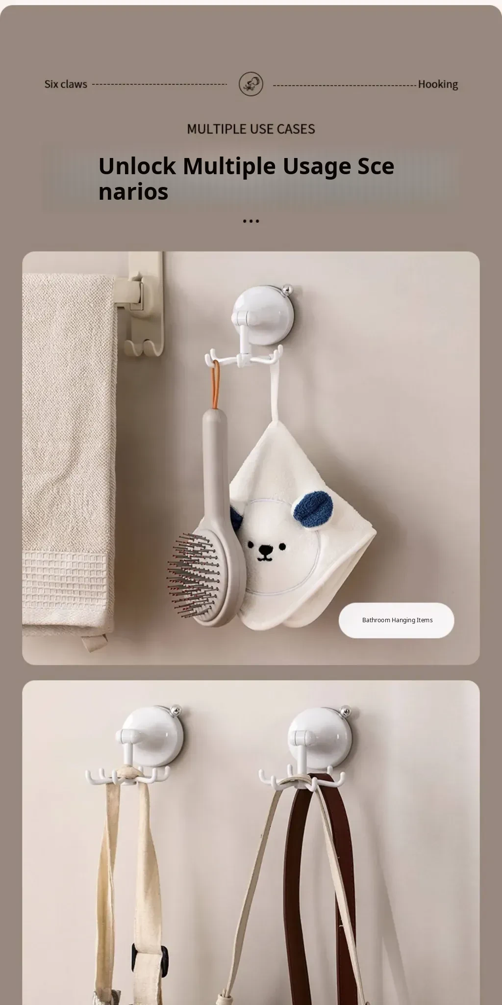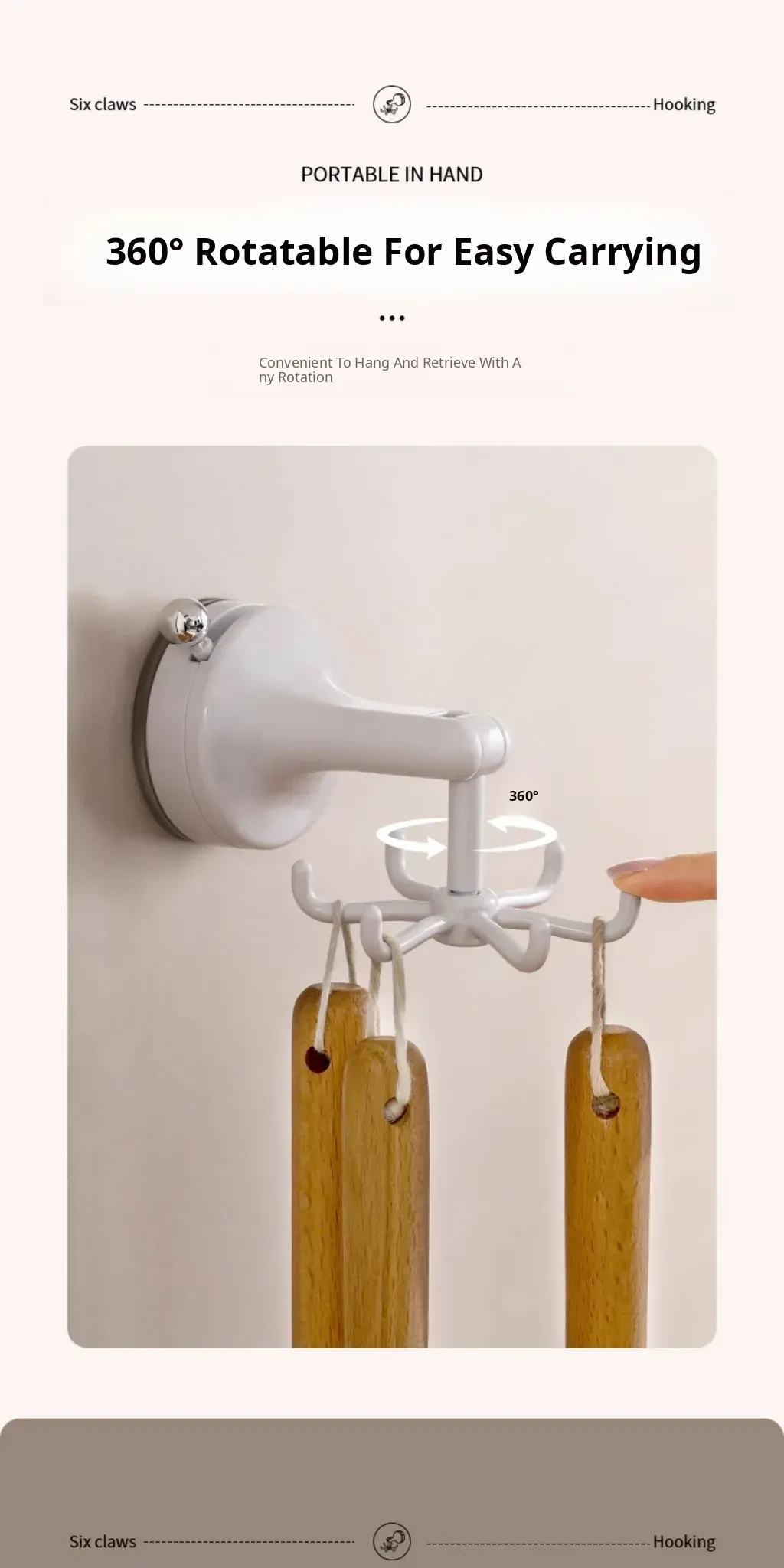 Suction cup six-claw swivel hook