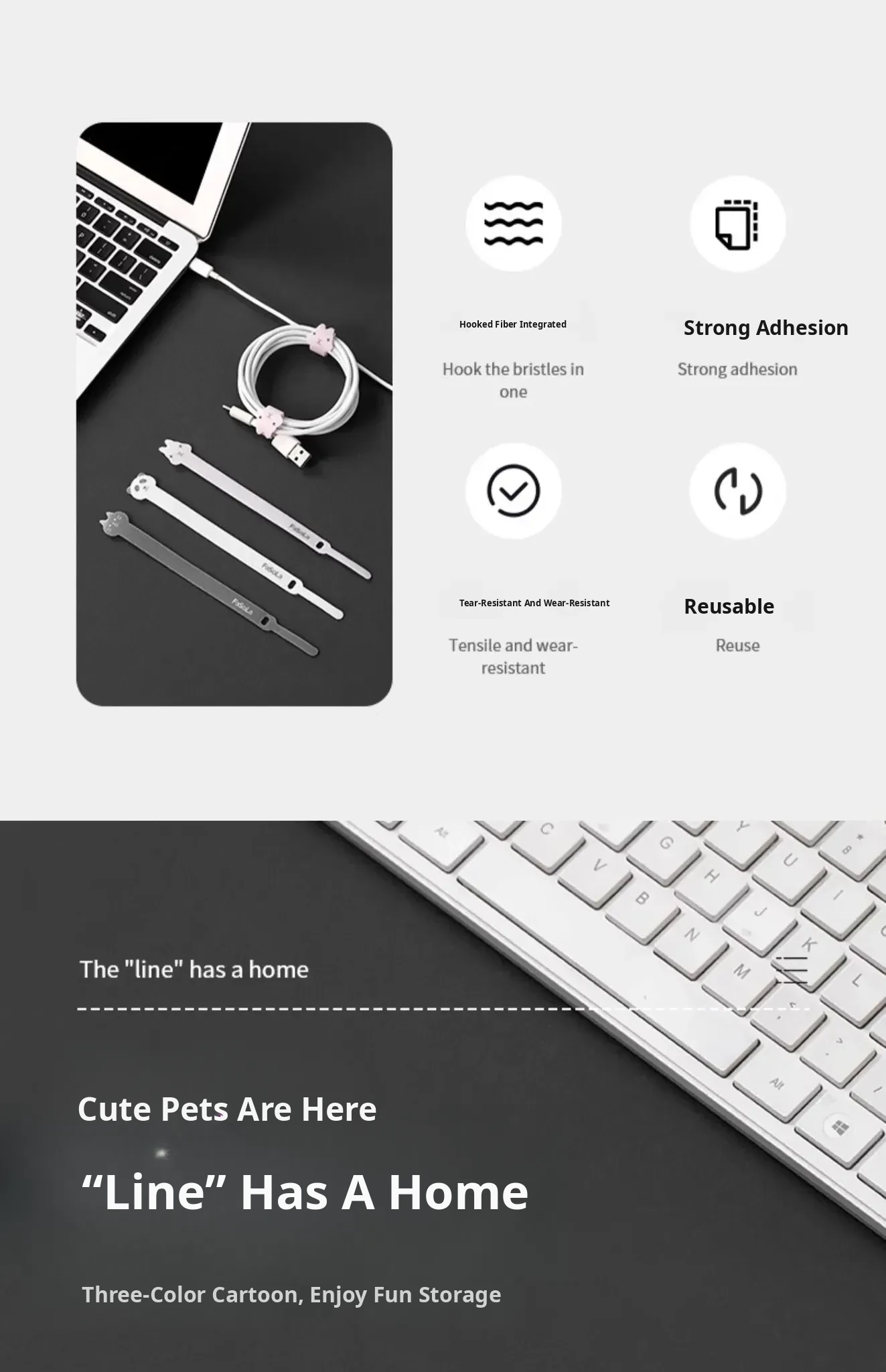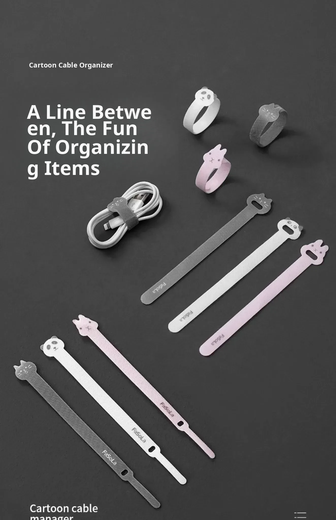 FaSoLa Magic Velcro Cable Organizer - Charging and Data Line Management, Perfect for Computer Wires and Bundling, Adjustable and Secure Fastening Straps for Tidy Storage