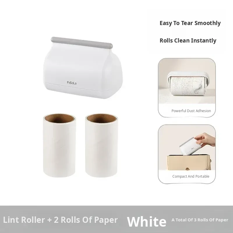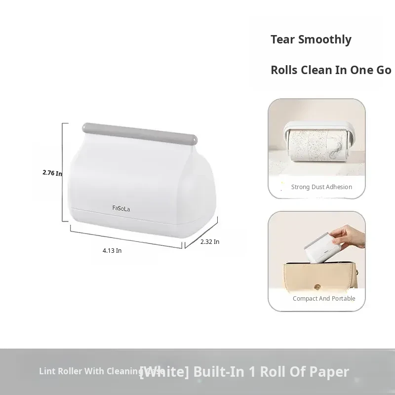 Lint Roller with Dust Box [White] - Includes 1 Roll of Refill Paper