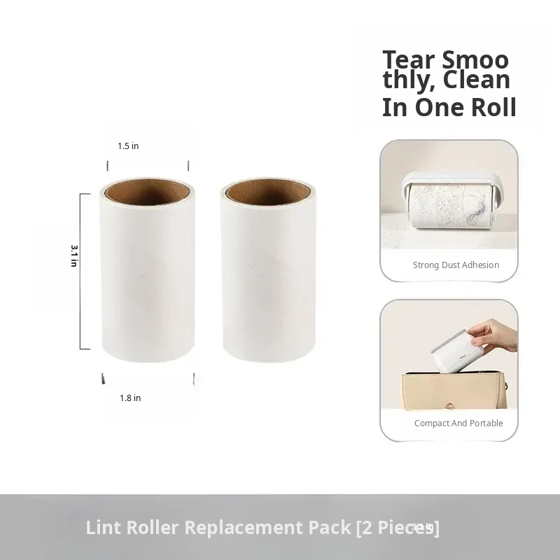Lint Roller with Refill + 2 Rolls of Refill Paper [White] - Total of 3 Rolls * Use as You Please