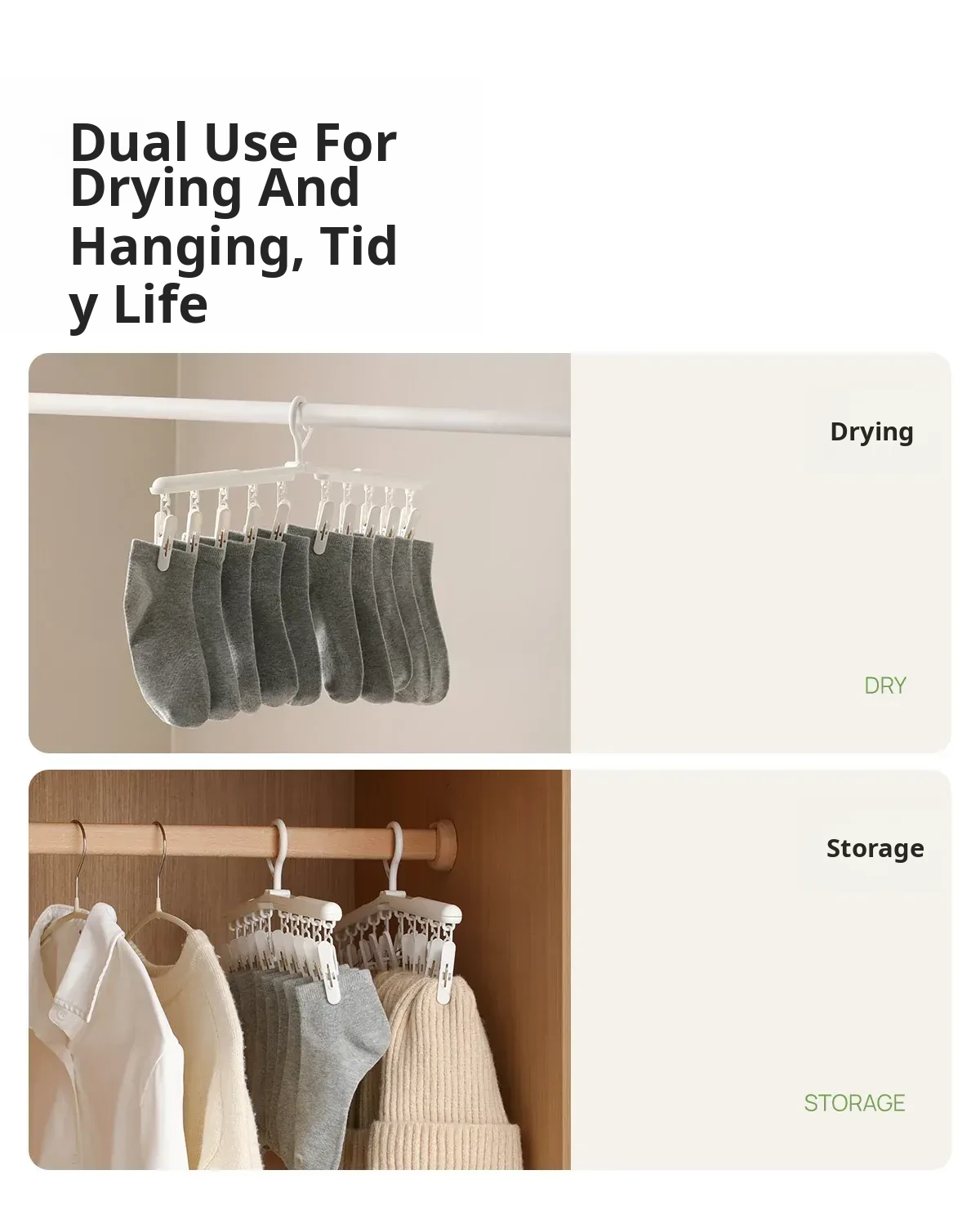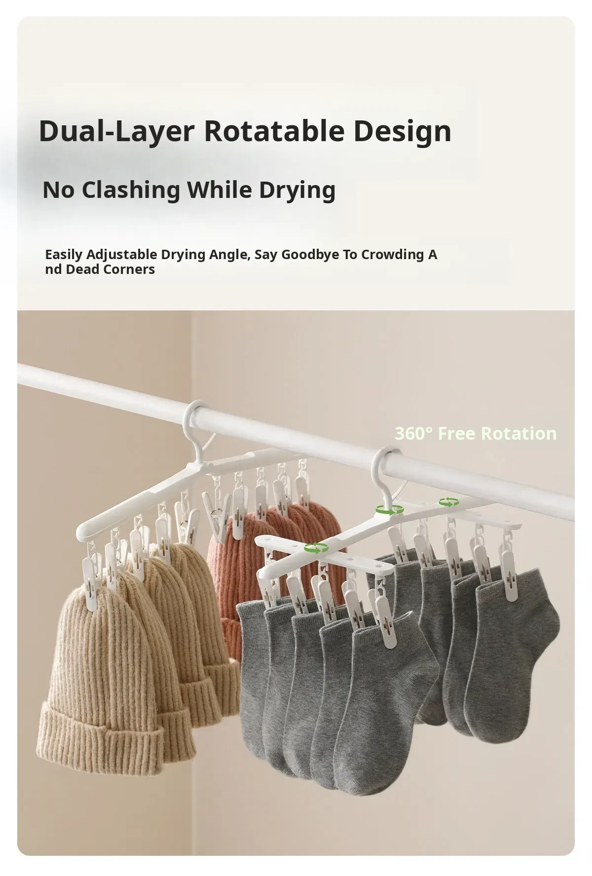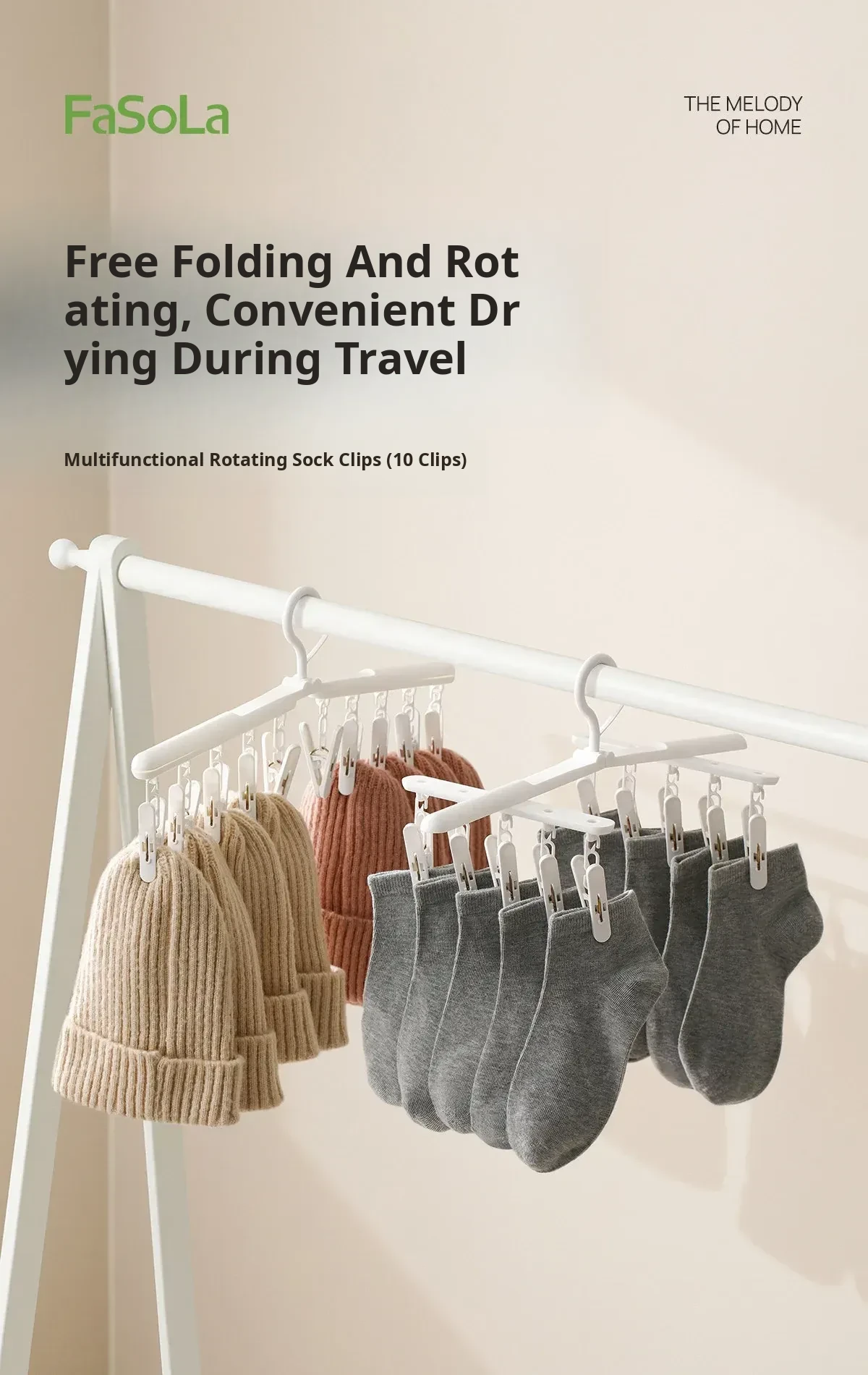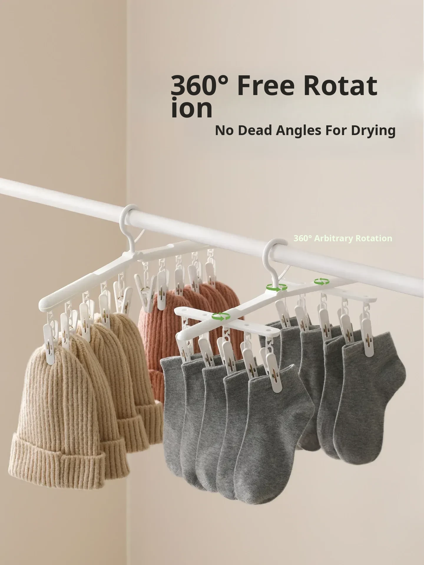 FaSoLa Multi-Clip Rotating Drying Rack - The Ultimate Windproof Household Solution for Indoor and Balcony Laundry, Perfect for Undergarments and Socks!