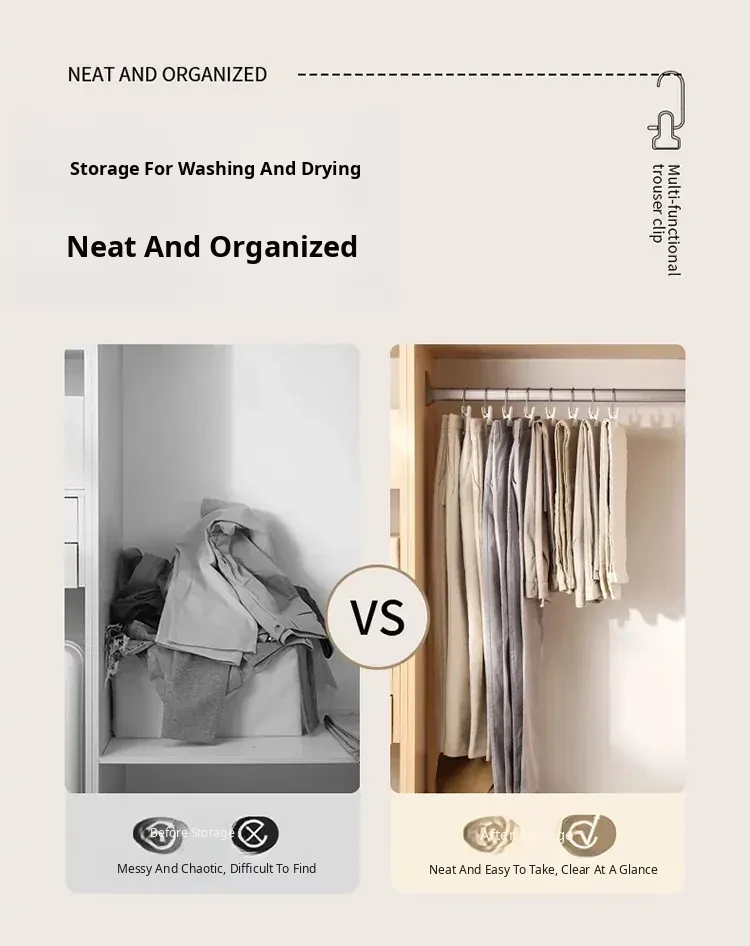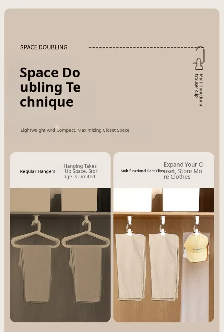 FaSoLa No Trace Pants Clips - Home Use Stainless Steel Multifunctional Clothes Drying Rack with Hooks, Perfect Skirt Storage Solution!