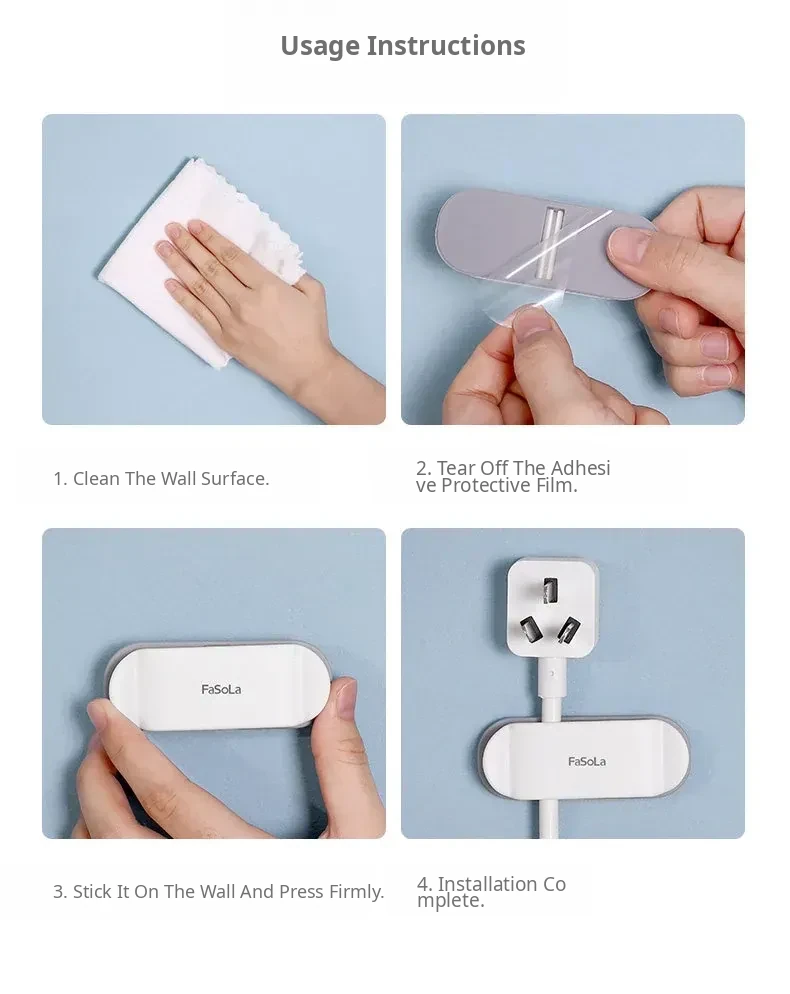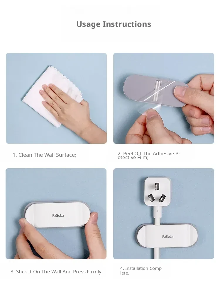 FaSoLa No-Drill Power Plug Hook - Wall-Mounted Organizer for Charging Cables and Data Lines, Keep Your Space Neat and Tidy!