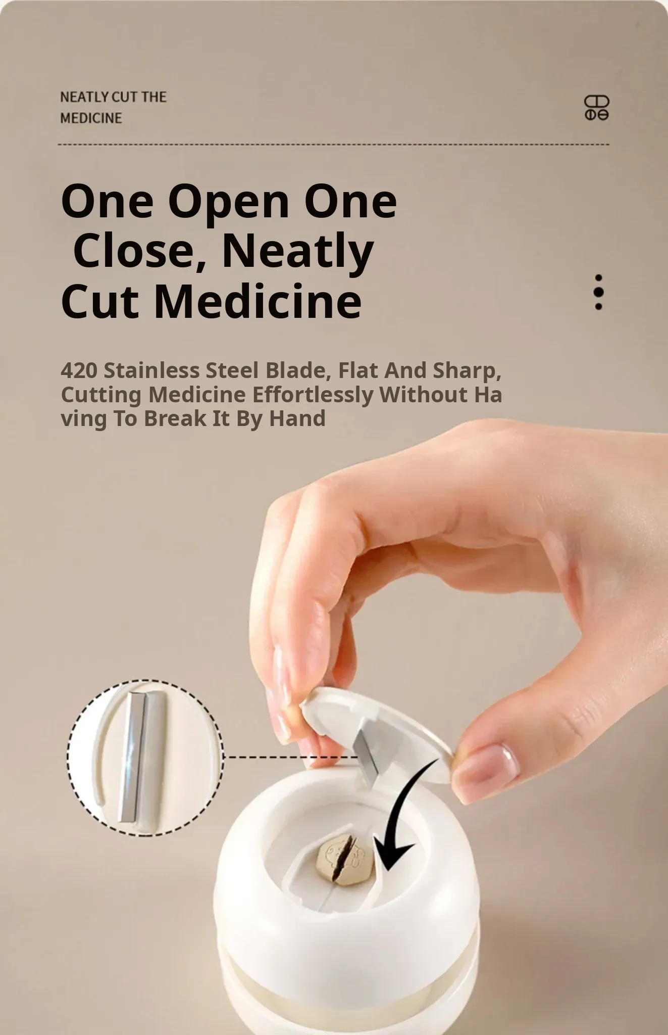 FaSoLa Pill Cutter - 2-in-1 Tablet Splitter and 4-Quarter Manual Medicine Grinder for Infants - Compact and Easy-to-Use Medicine Divider