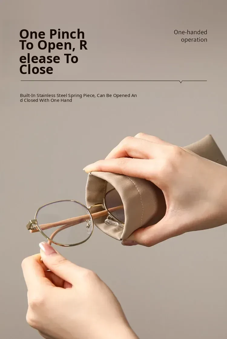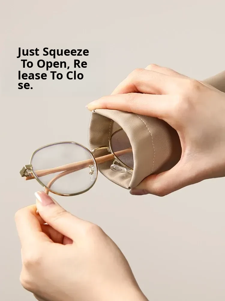 FaSoLa Portable Eyeglass Case - Automatic Closure, Durable Sunglasses Leather Storage Bag with Lens Cleaning Cloth - Stylish & Protective Eyewear Pouch