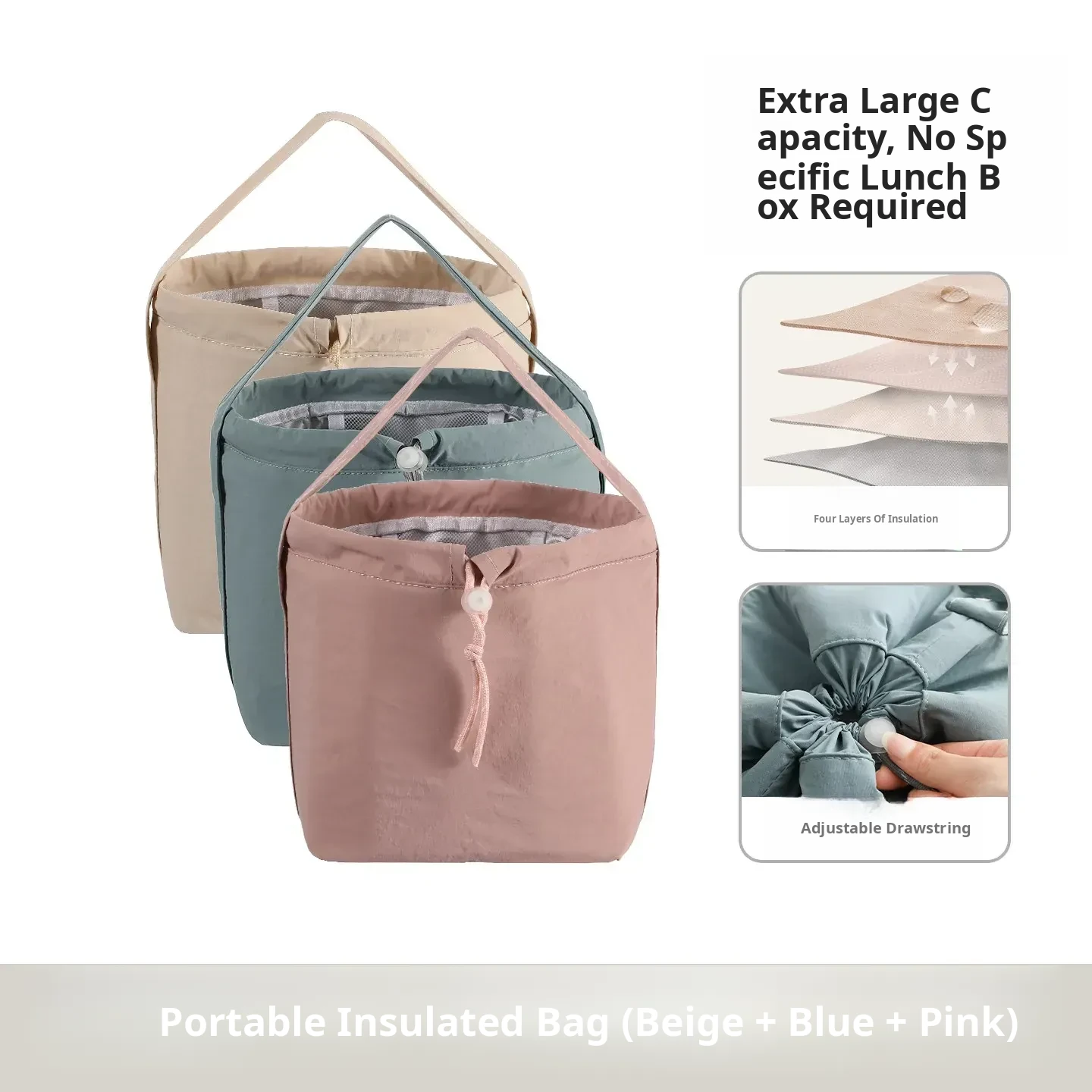 Portable Thermal Bag [Beige+Pink+Blue]