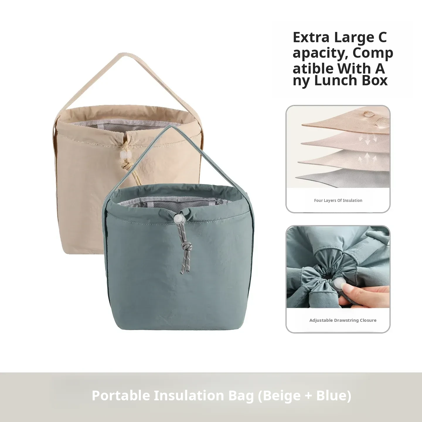 Portable Thermal Bag [Beige + Blue]
