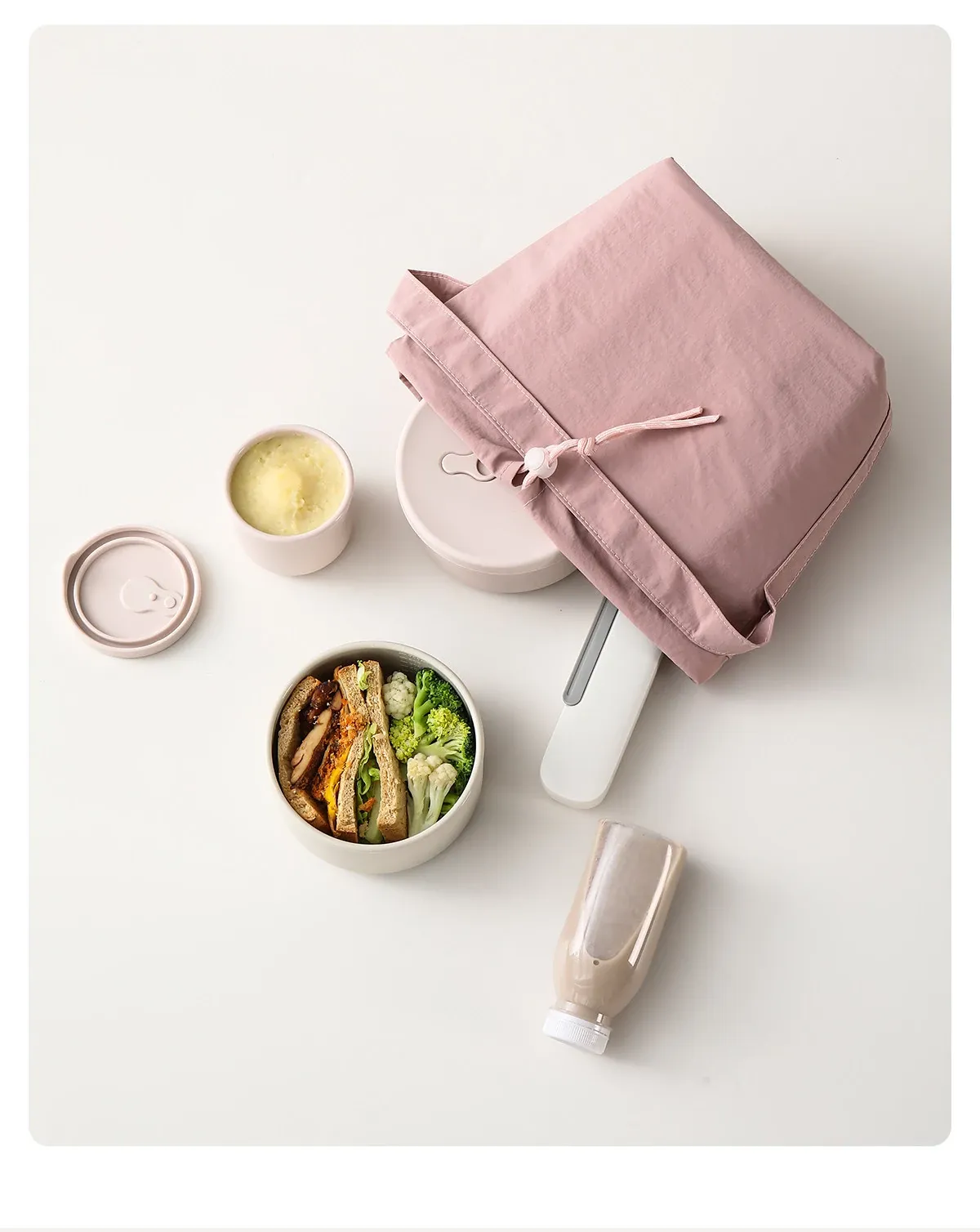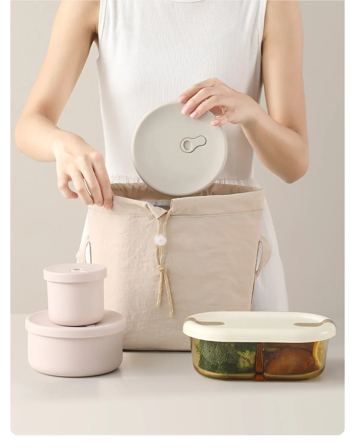 Portable Thermal Bag [Beige + Pink]