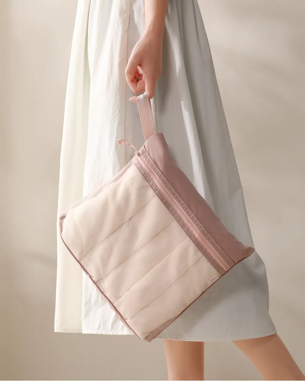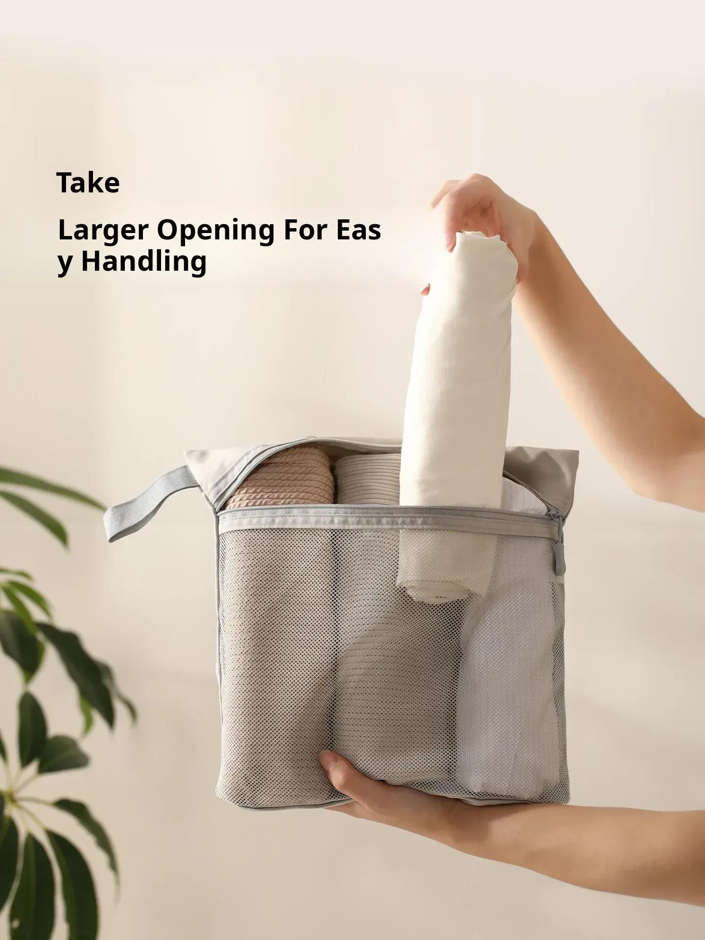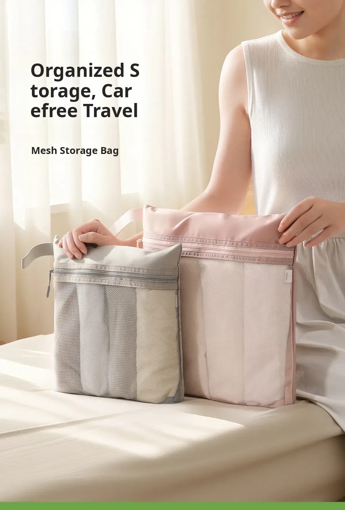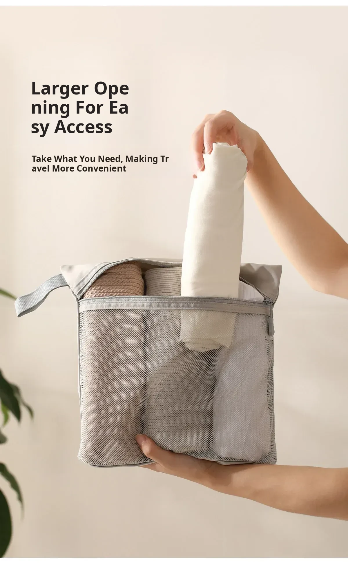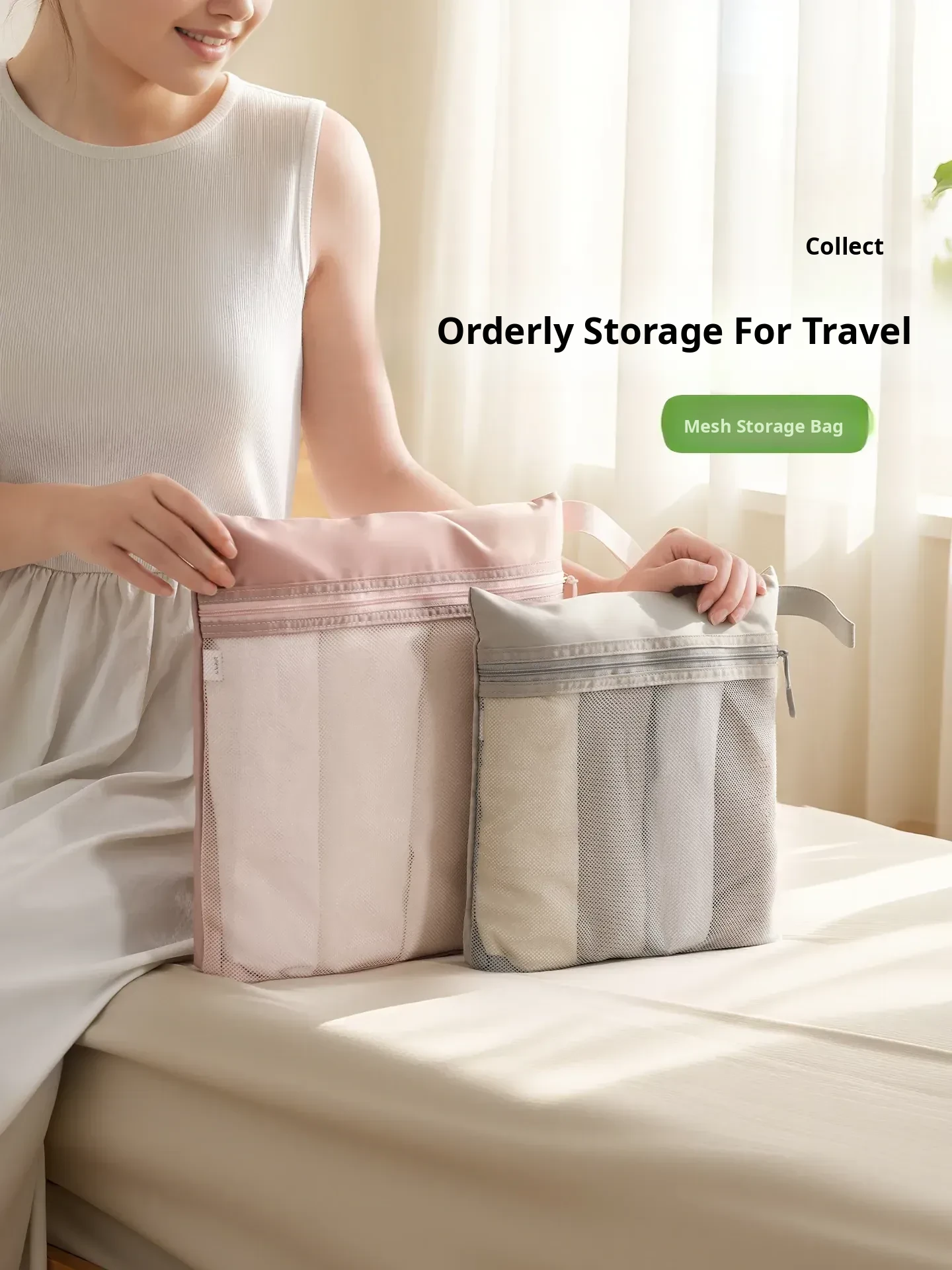 FaSoLa Portable Mesh Makeup Bag - Large Capacity Travel Organizer with Quick-Dry Design, Transparent Toiletry Pouch for Effortless Packing and Easy Access