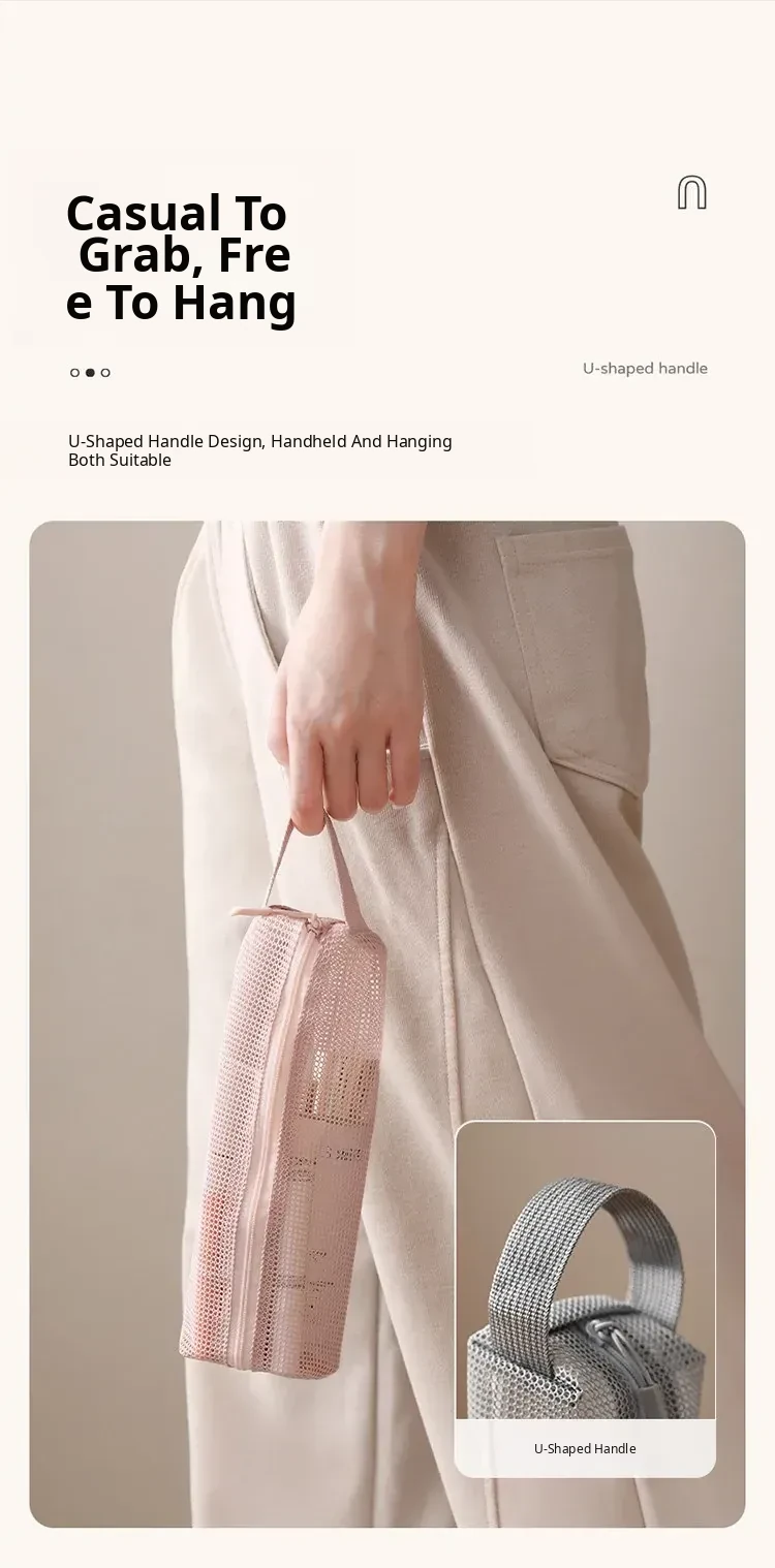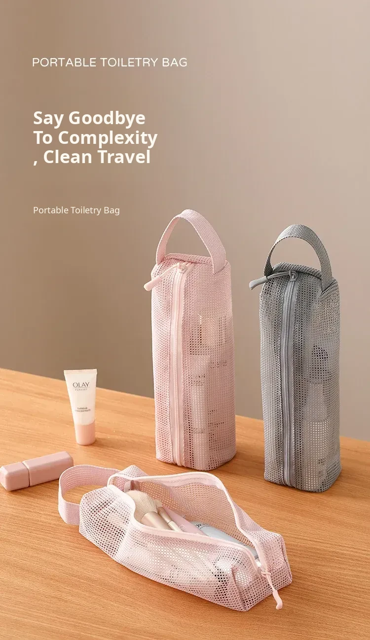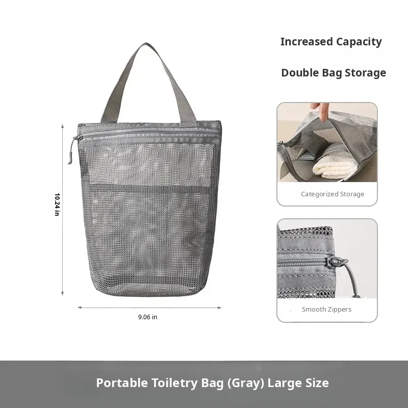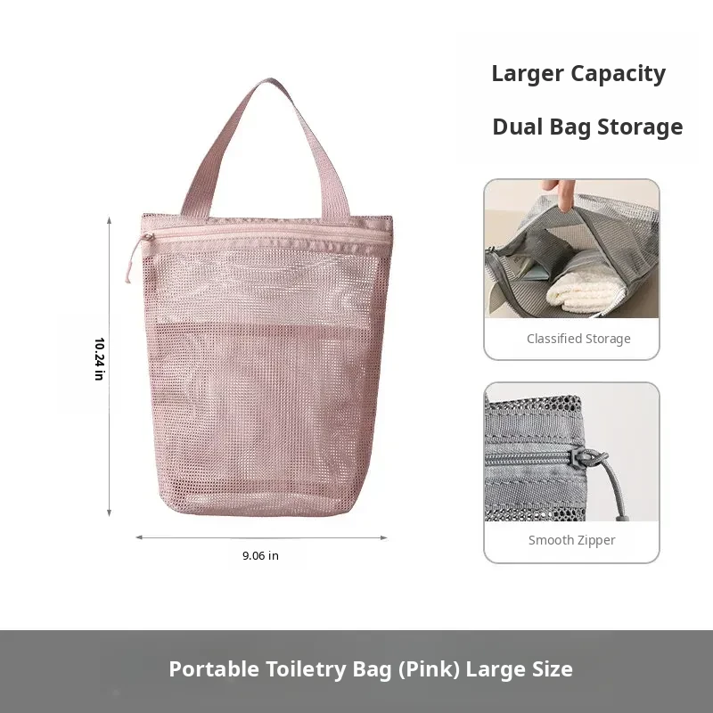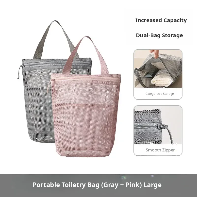 FaSoLa Portable Travel Toiletry Bag - Spacious Handheld Makeup Organizer for Business Trips and Vacations, Mesh Shower Bag for Easy Storage and Convenience