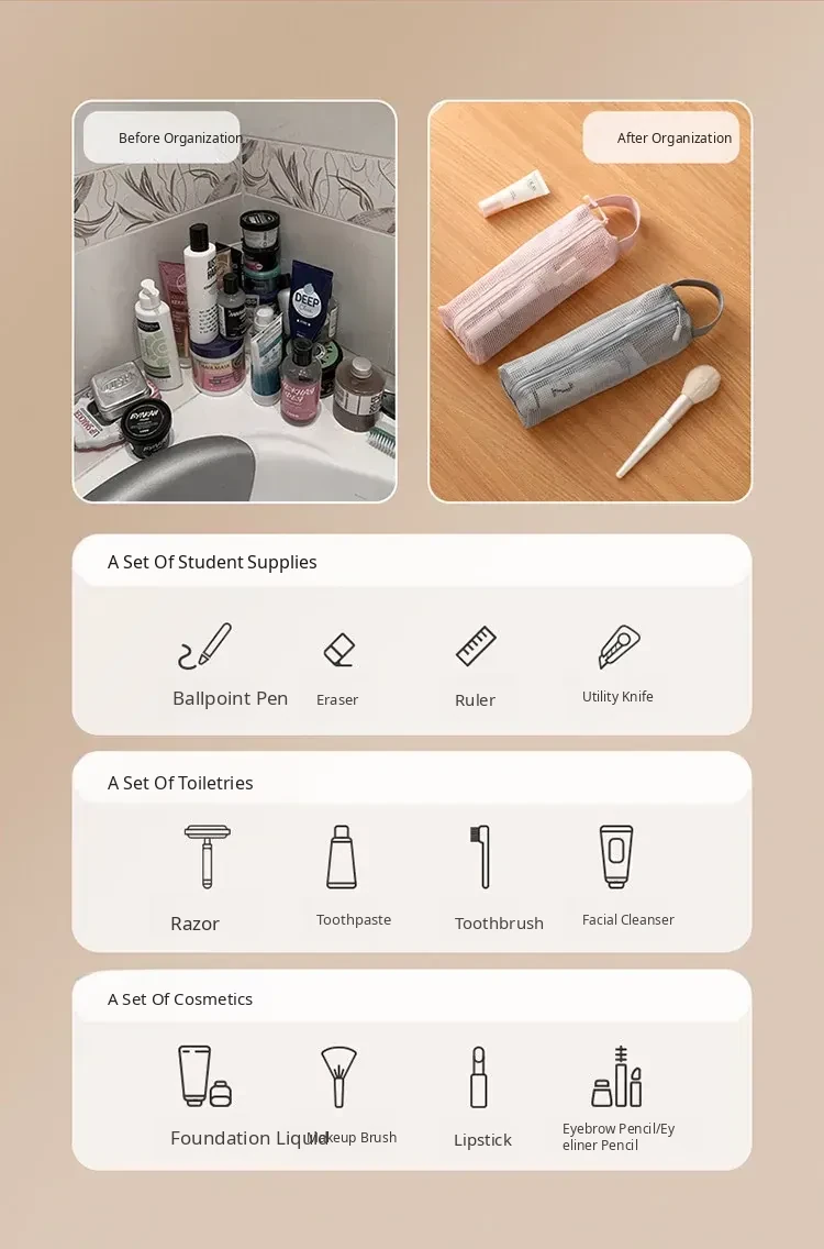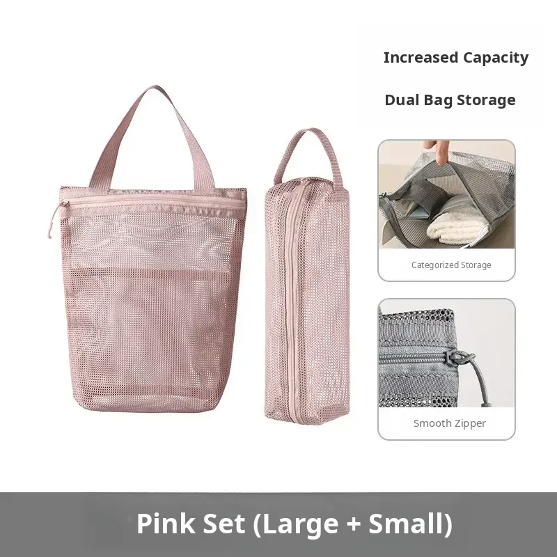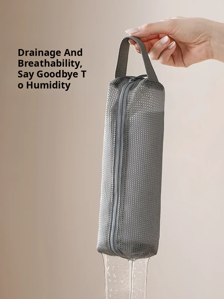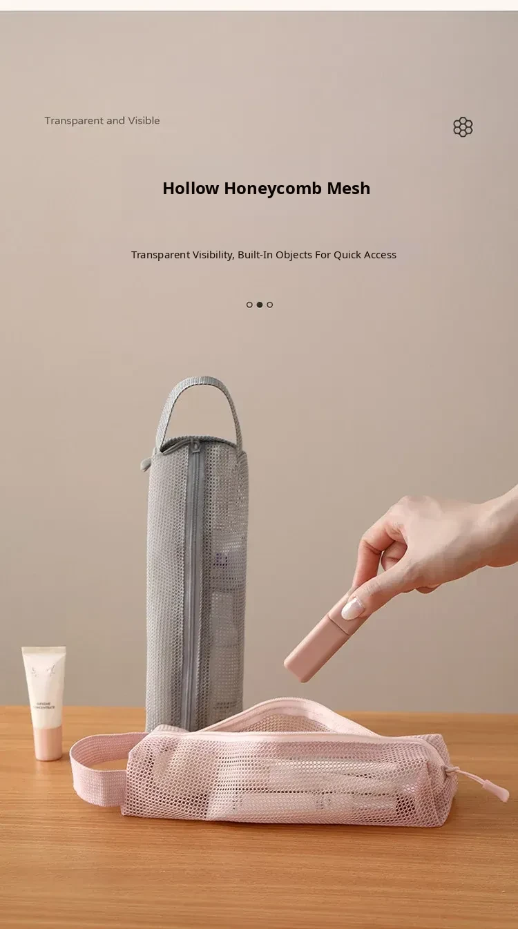 FaSoLa Portable Travel Toiletry Bag - Spacious Handheld Makeup Organizer for Business Trips and Vacations, Mesh Shower Bag for Easy Storage and Convenience