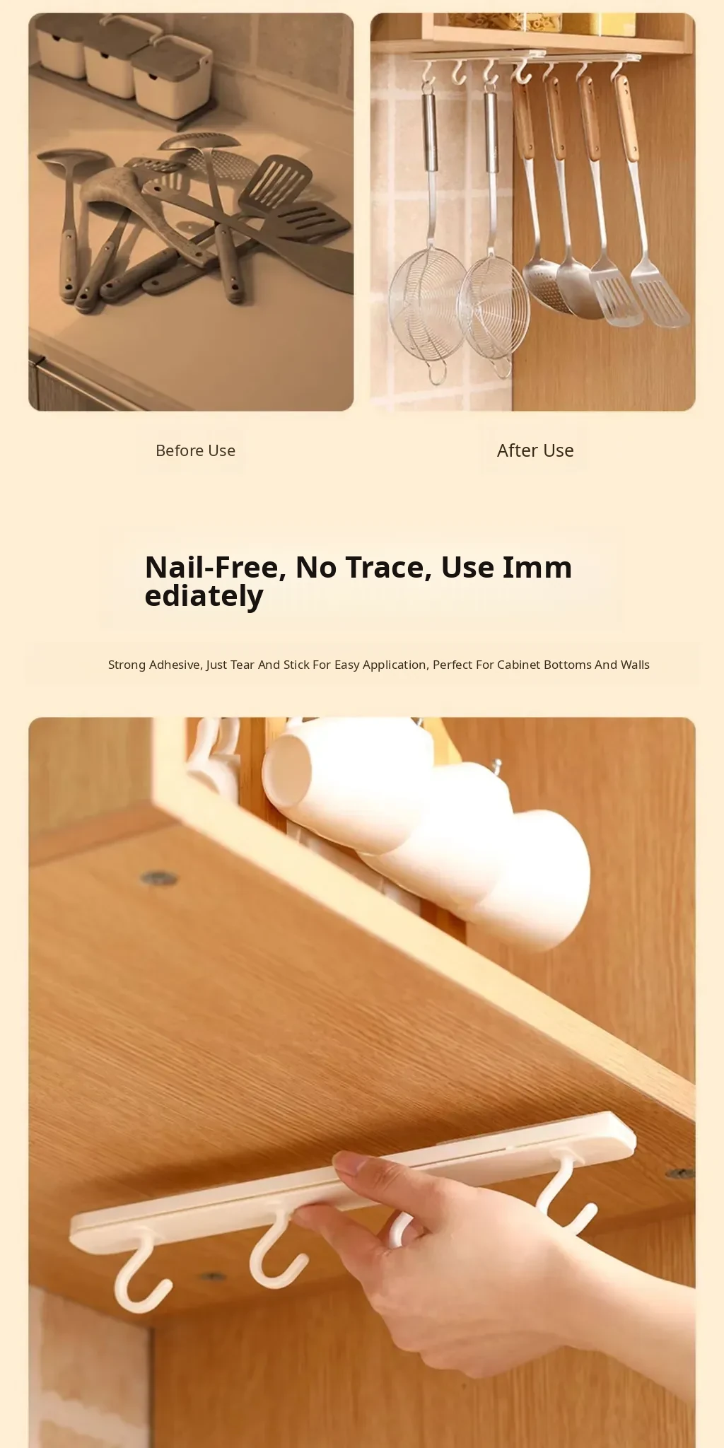 FaSoLa Retractable Adhesive Hooks - No Drill, Strong Adhesion for Door & Kitchen - Space-Saving, Versatile Clothes Hanger and Stick-On Hook for Easy Organization