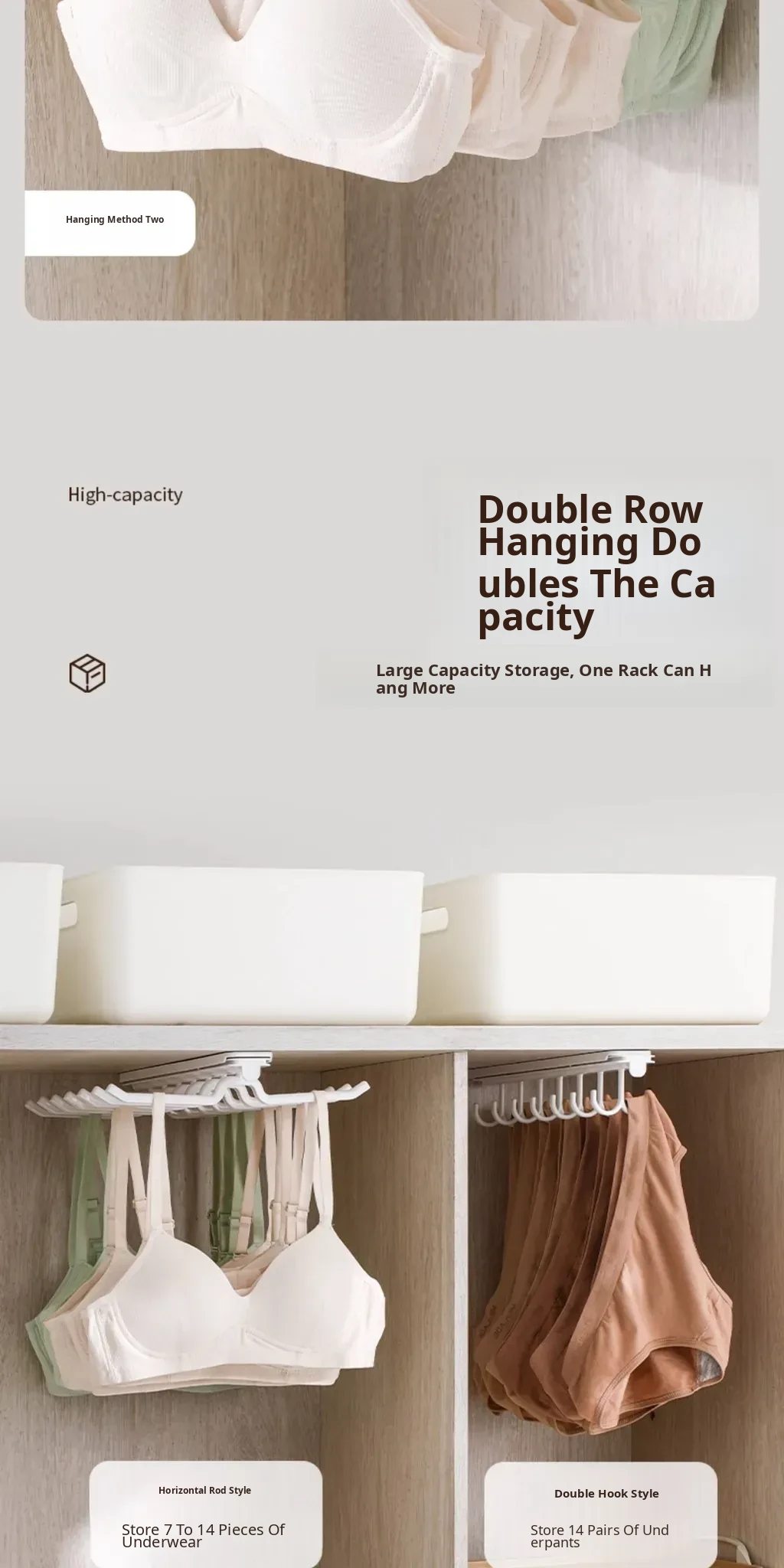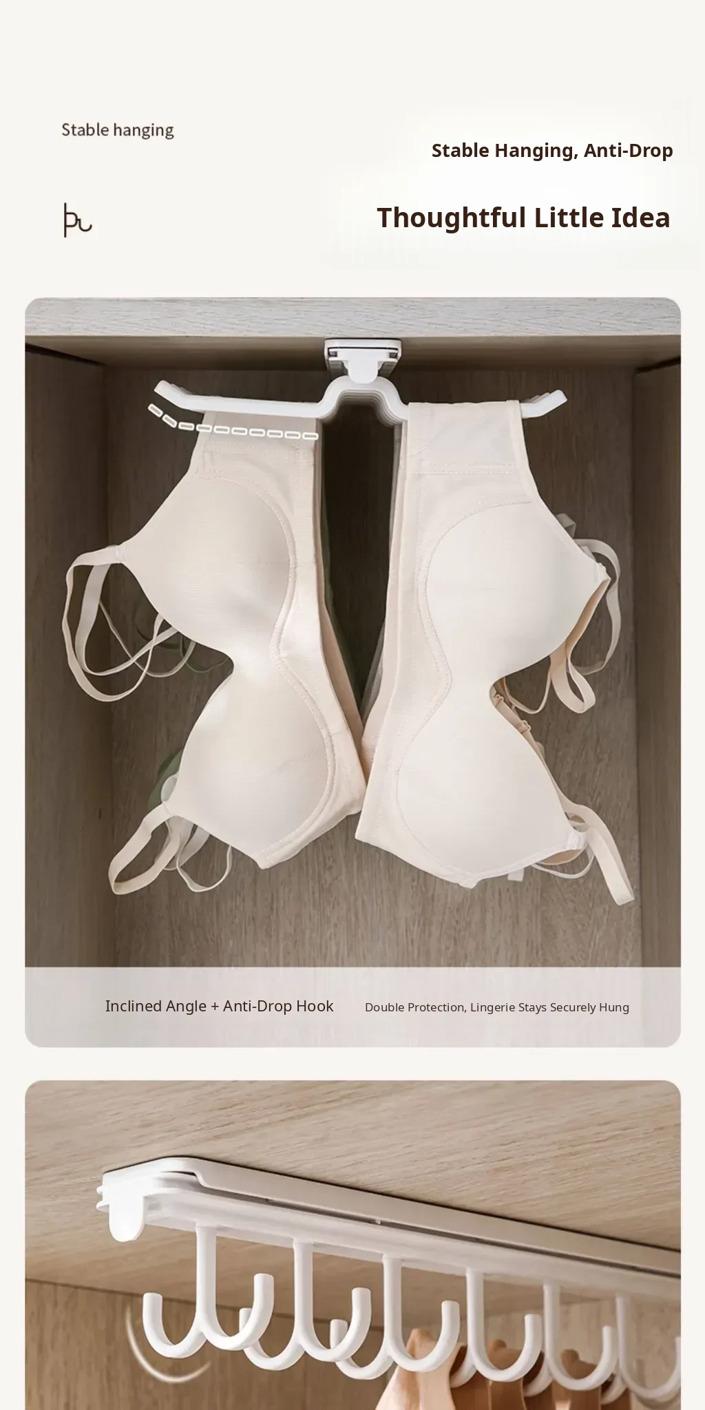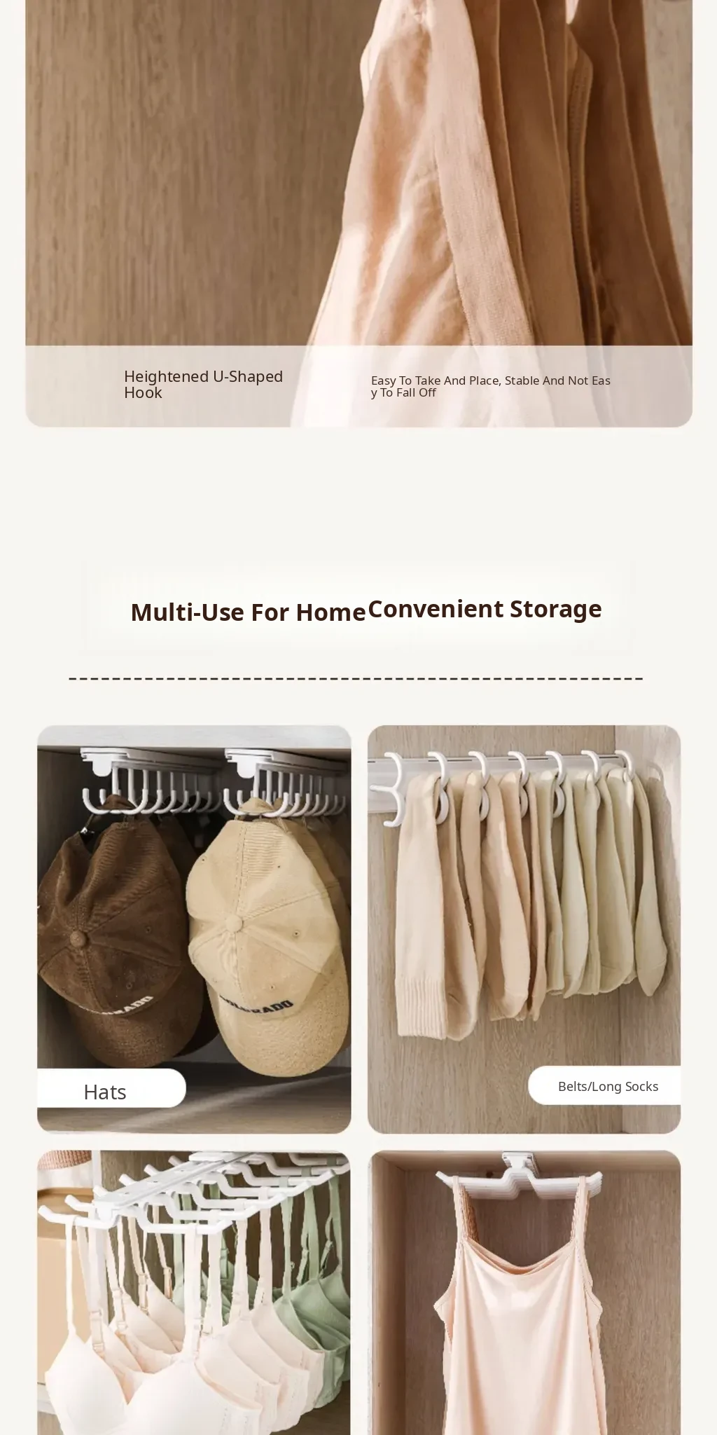 FaSoLa Sliding Bra and Hat Rack - Space-Saving Closet Organizer with Multi-Hook Design for Home Use, Perfect for Storing Bras and Accessories!