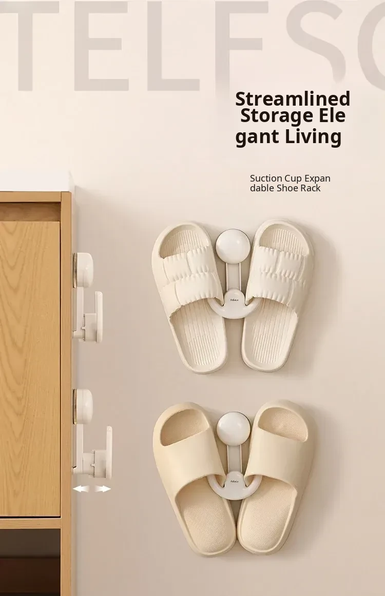 FaSoLa Suction Cup Shower Slippers Holder - No Drill Wall-Mounted Storage Rack for Bathroom and Entryway, Water-Drain Design for Easy Organization