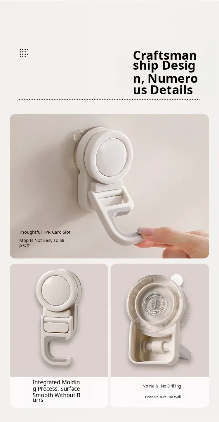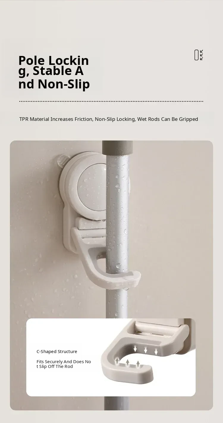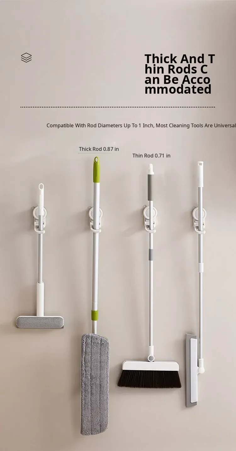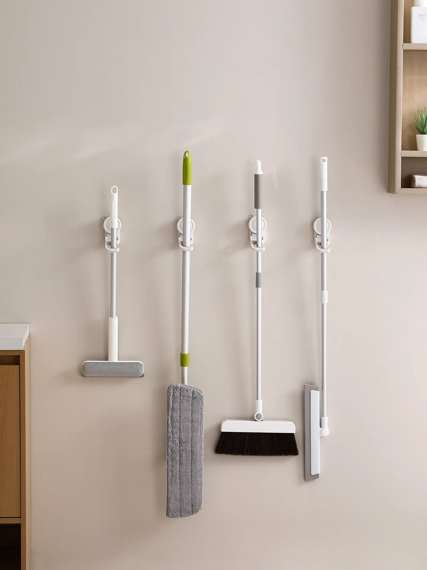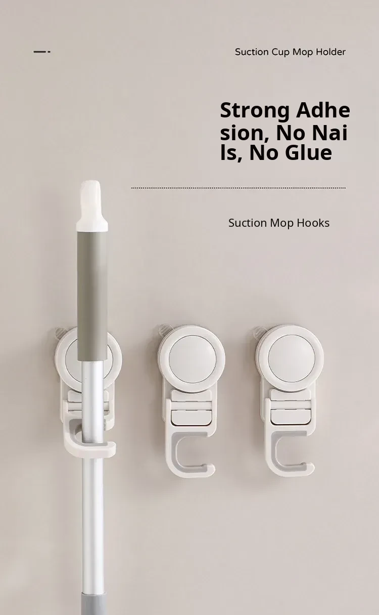 FaSoLa Suction Mop Hook - No Drill Wall-Mounted Broom Holder for Bathroom, Convenient Mop Clips and Sturdy Fasteners for Easy Storage and Organization
