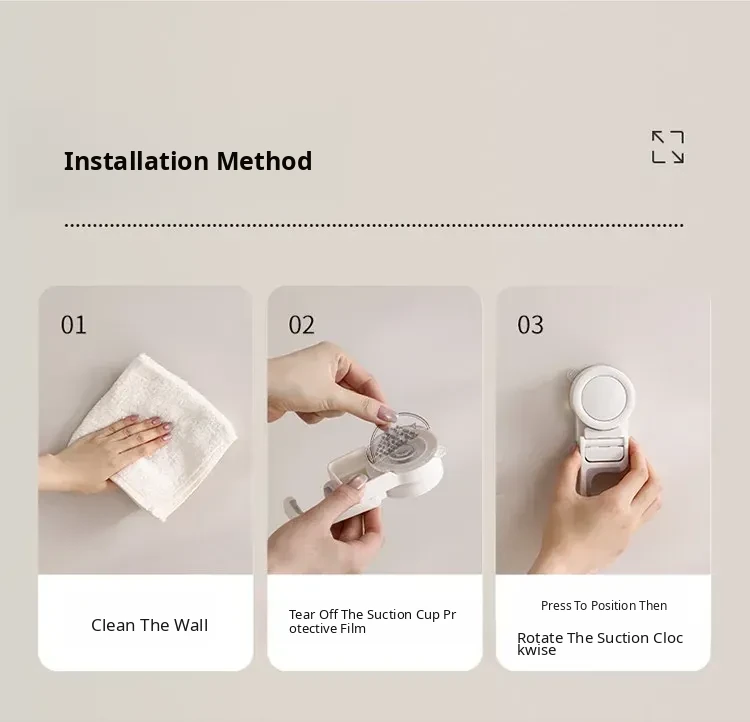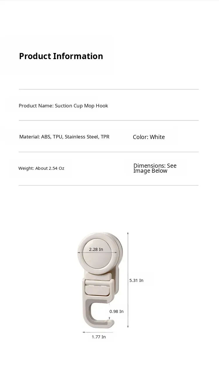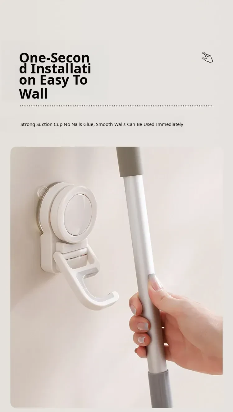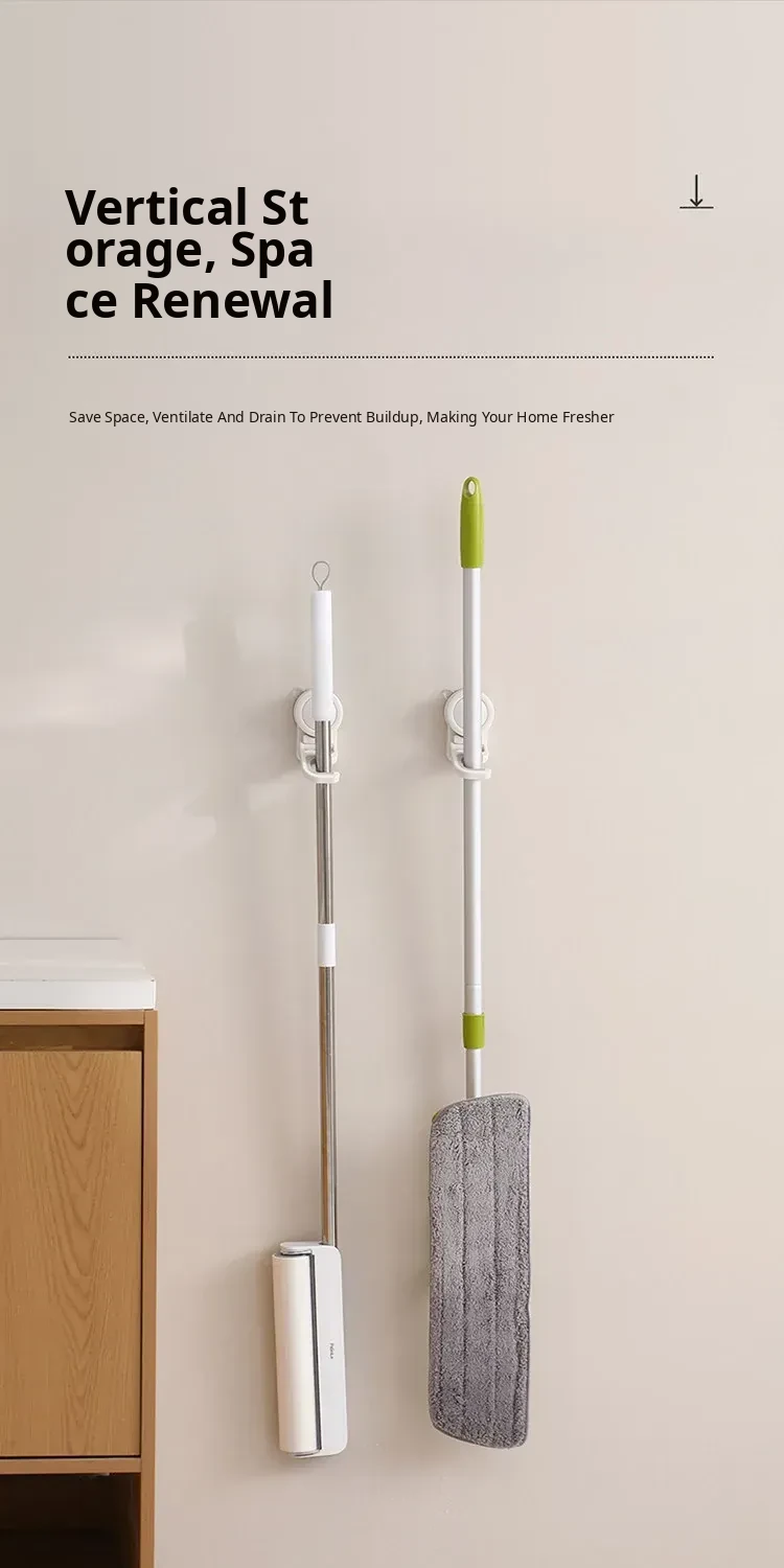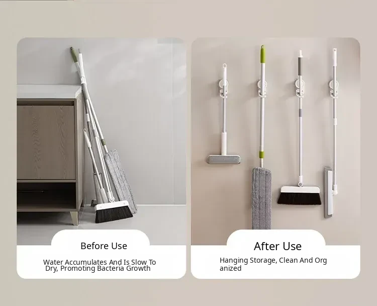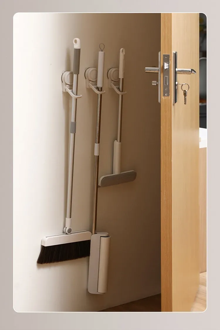 FaSoLa Suction Mop Hook - No Drill Wall-Mounted Broom Holder for Bathroom, Convenient Mop Clips and Sturdy Fasteners for Easy Storage and Organization