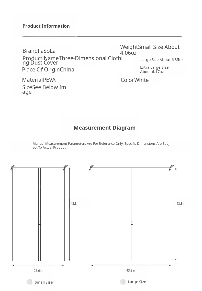 [Small Size 23.62in*43.31in] White Translucent*2