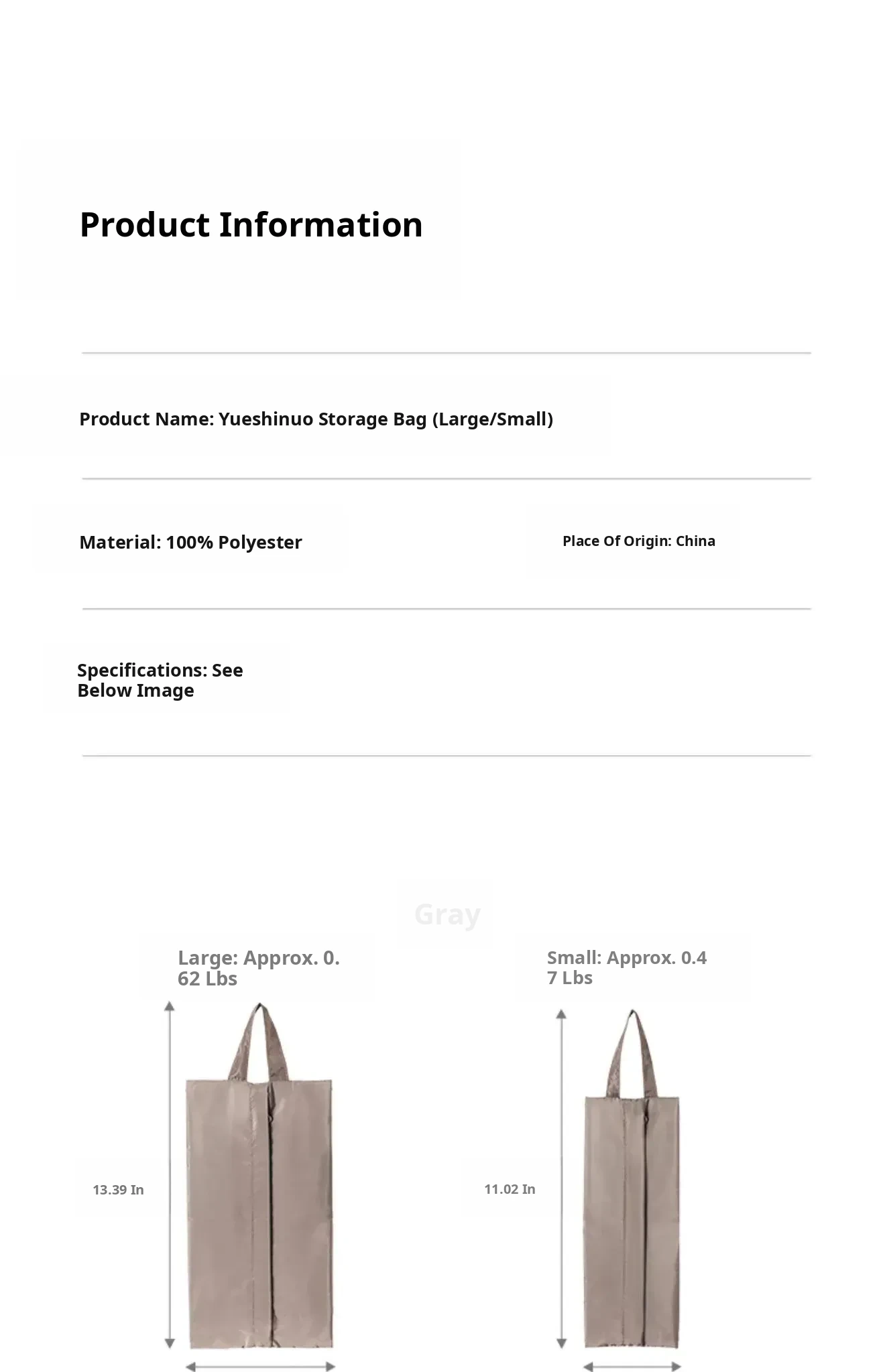Storage Bag - Gray (Large)
