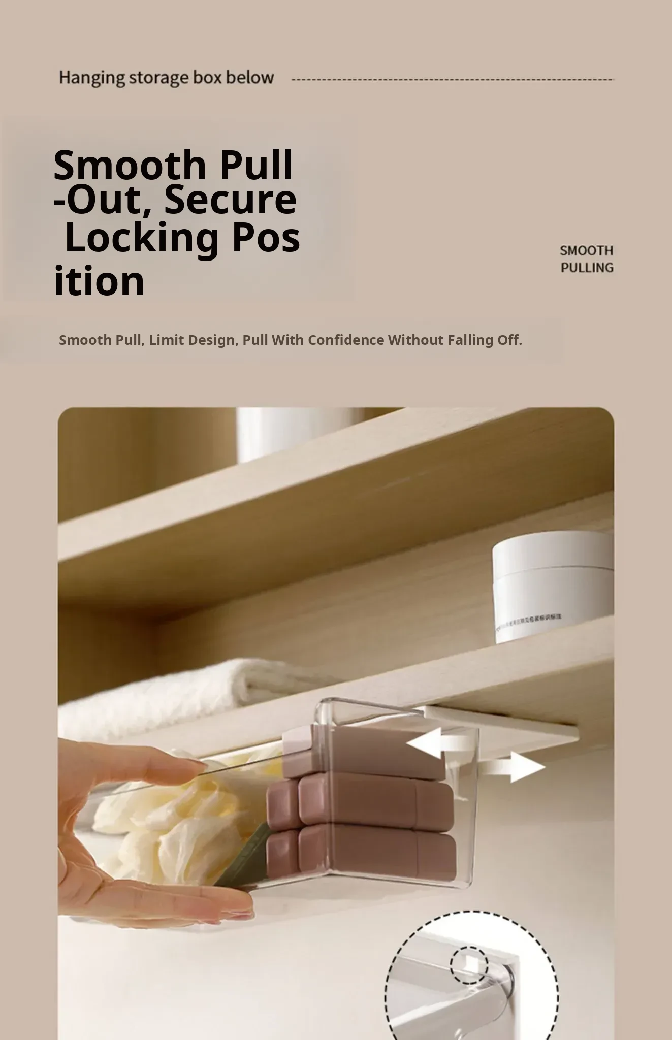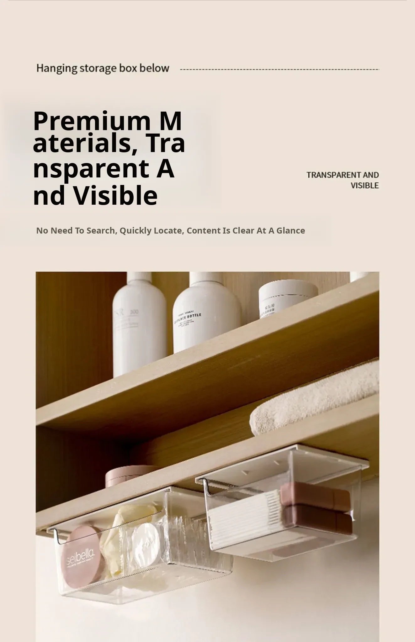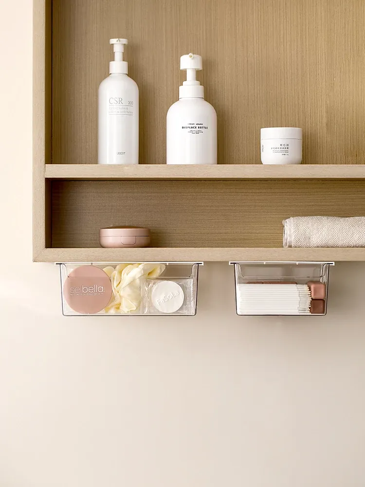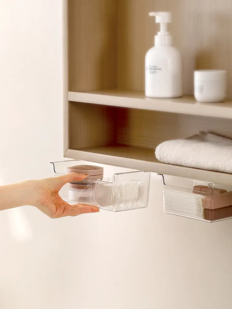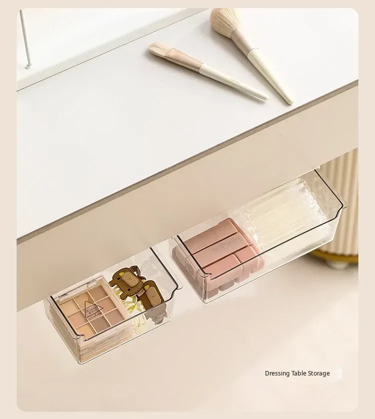 FaSoLa Under-Desk Hidden Drawer Organizer - Transparent Makeup Storage Box for Cosmetics and Cotton Pads, Perfect for a Clutter-Free Vanity!