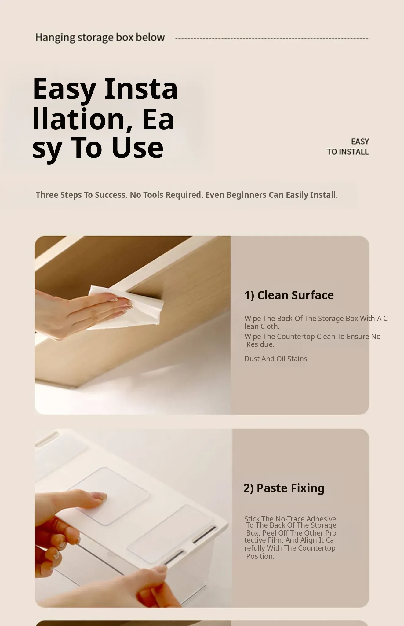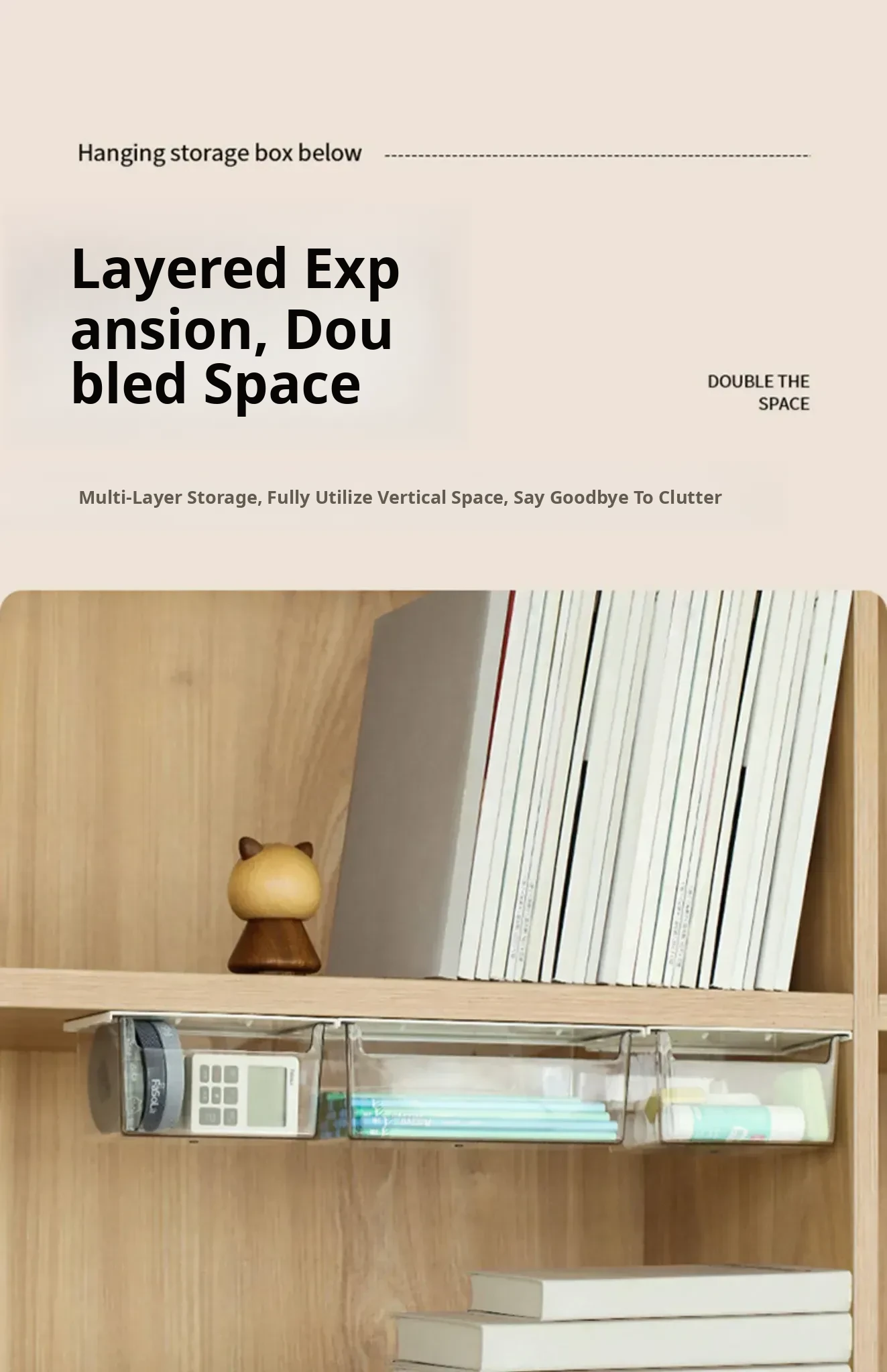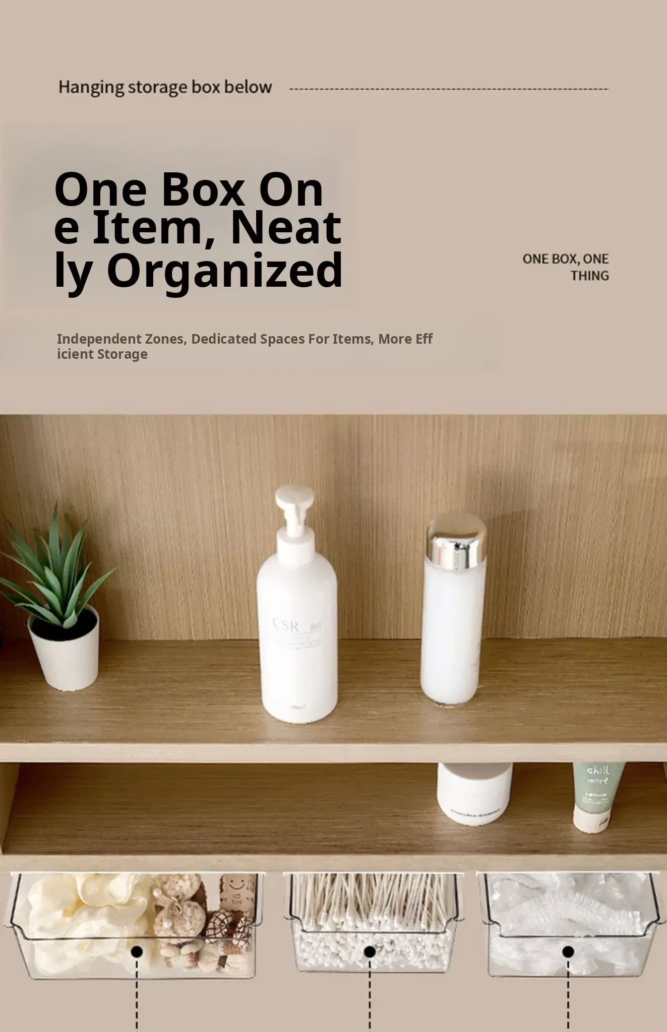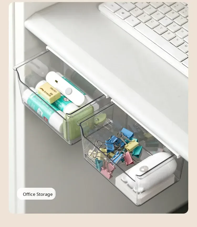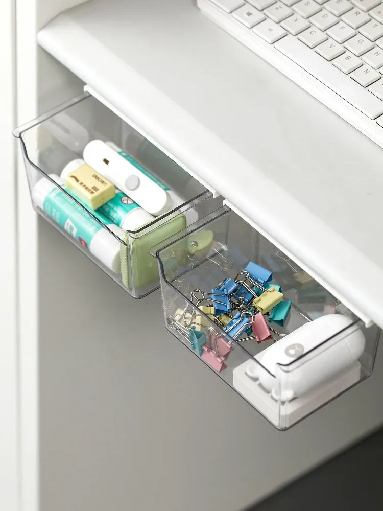 FaSoLa Under-Desk Hidden Drawer Organizer - Transparent Makeup Storage Box for Cosmetics and Cotton Pads, Perfect for a Clutter-Free Vanity!