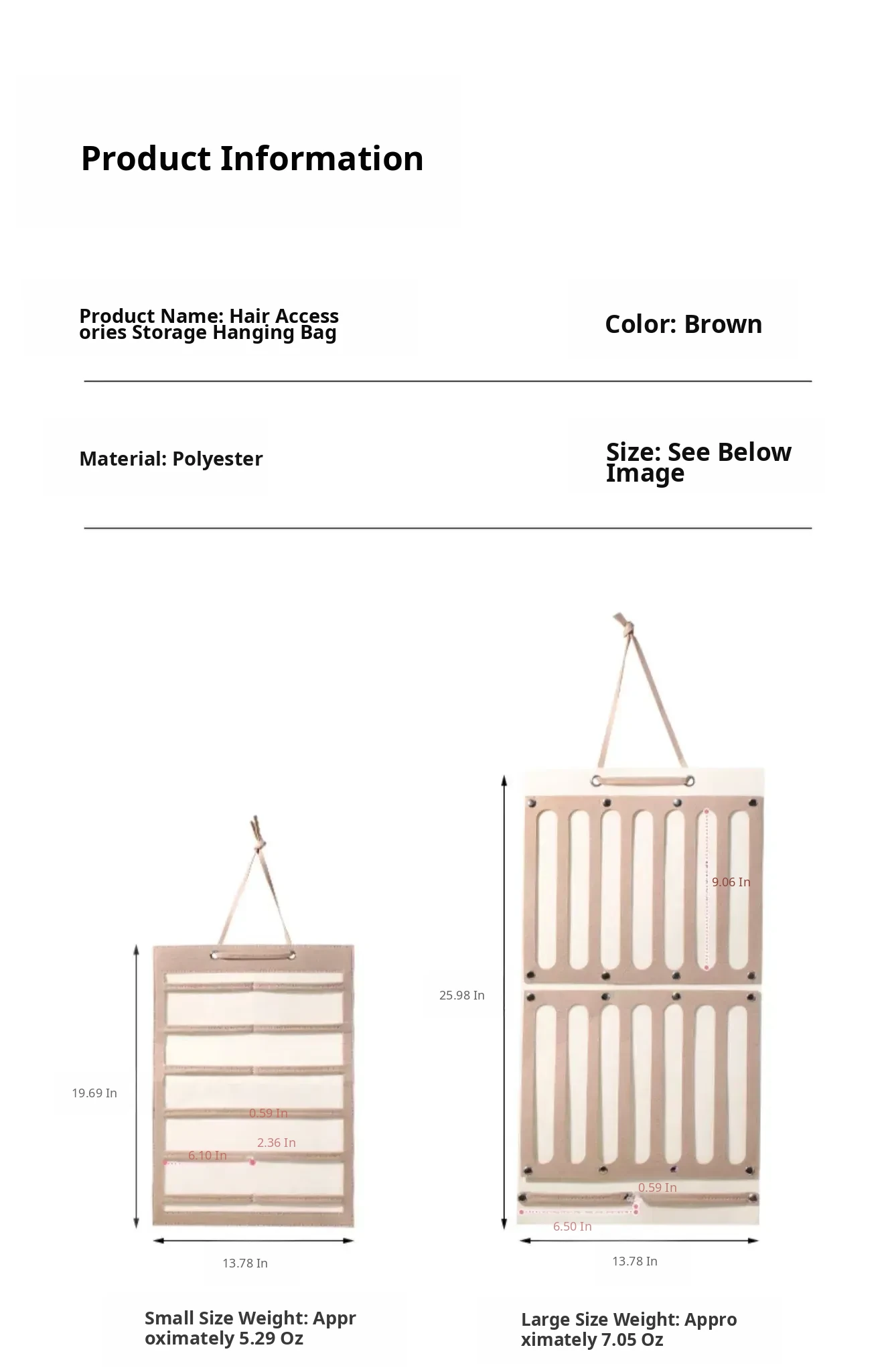 Hair Accessories Storage Hanging Bag (Small + Large Size)