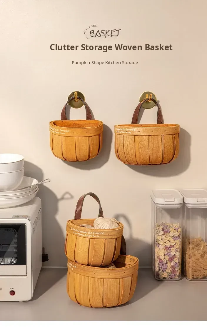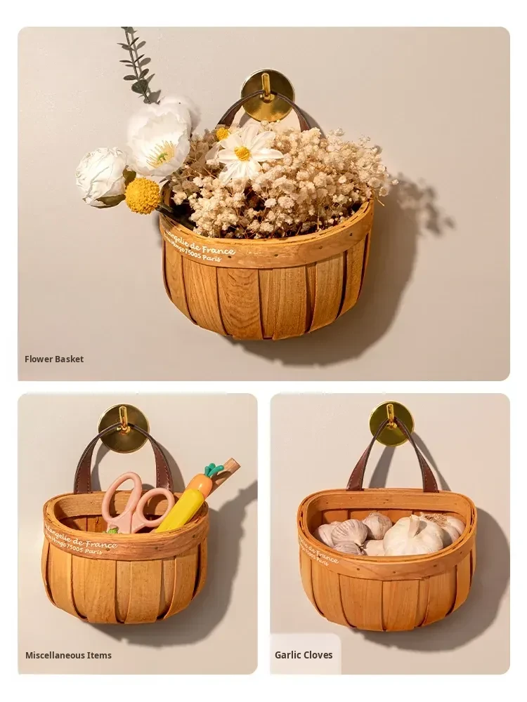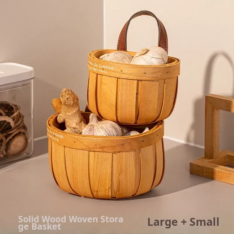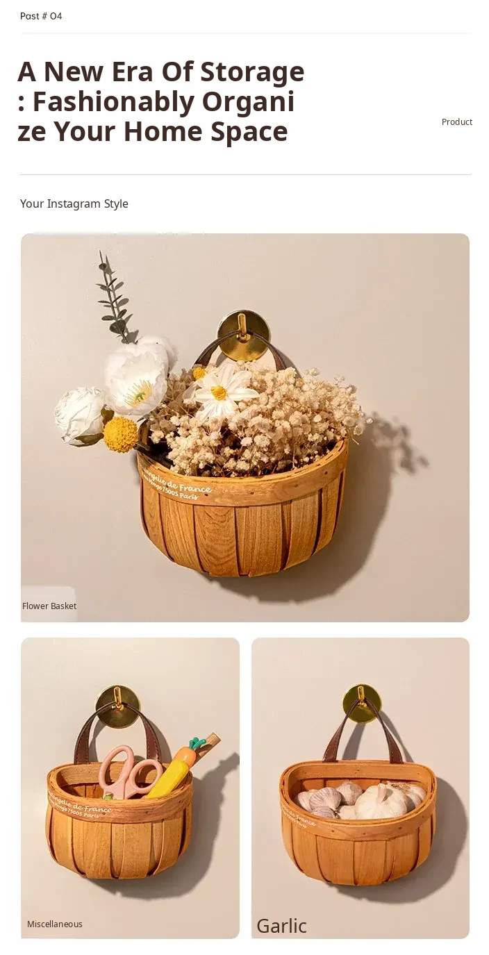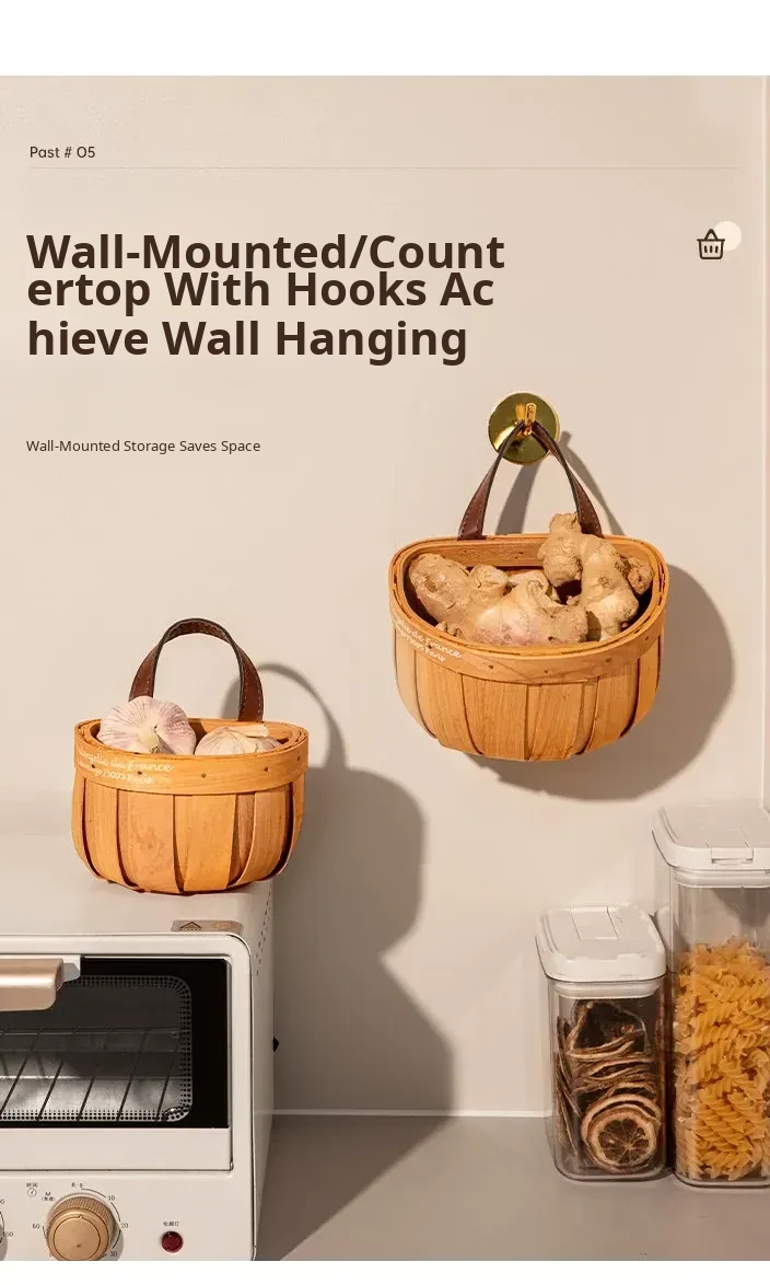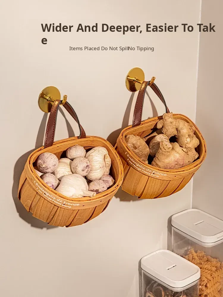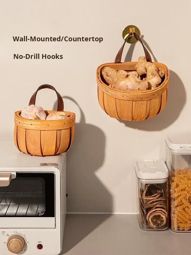 Handcrafted Bamboo Garlic and Ginger Storage Basket - Wall-Mounted Organizer for Onions, Garlic, and Ginger - Stylish and Functional Kitchen Decor