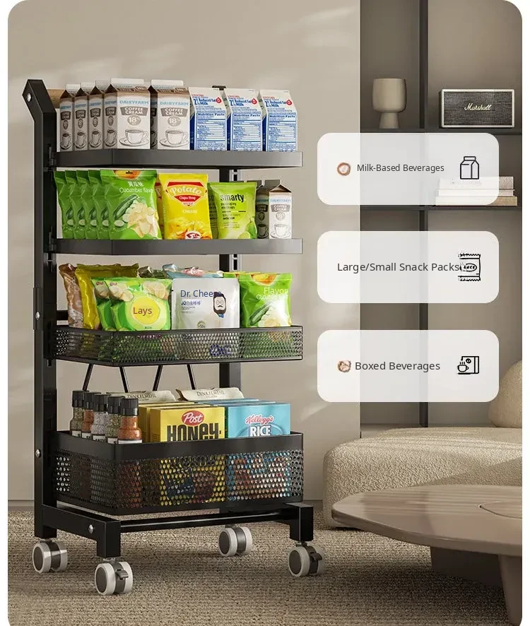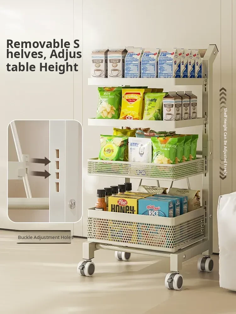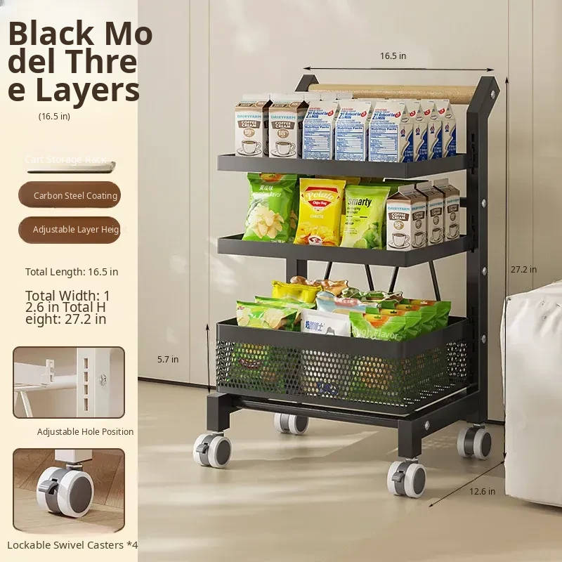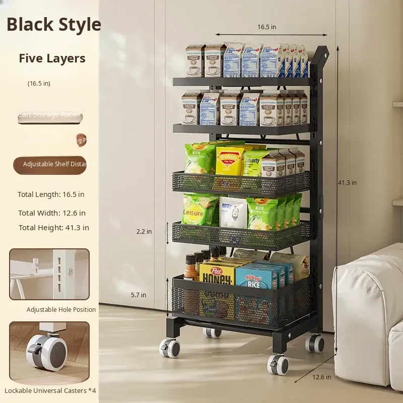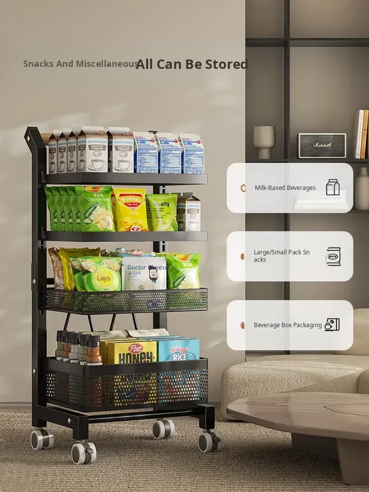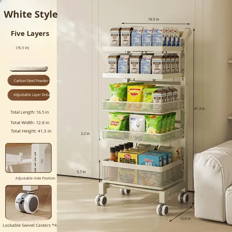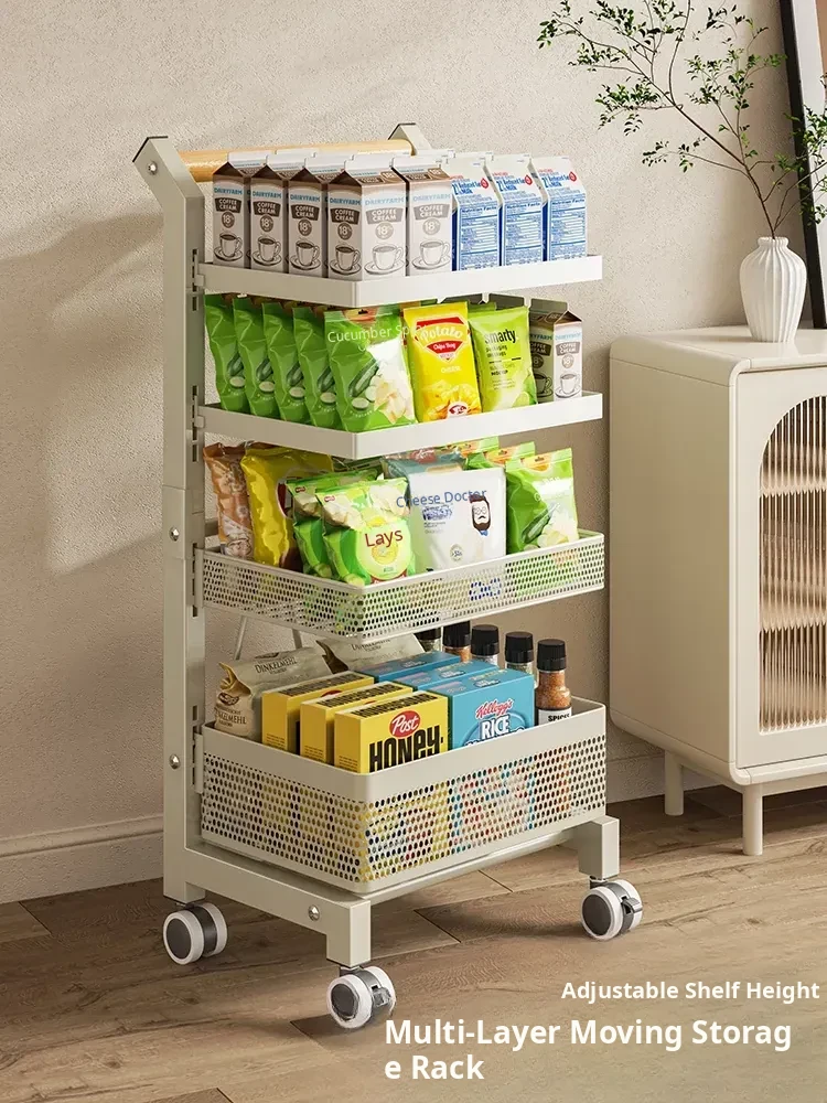 Multi-Layer Rolling Cart - Versatile Storage Rack for Snacks, Toys, and More | Space-Saving Floor Storage Solution for Bedroom and Living Room | Large Capacity Mobile Organizer Cabinet