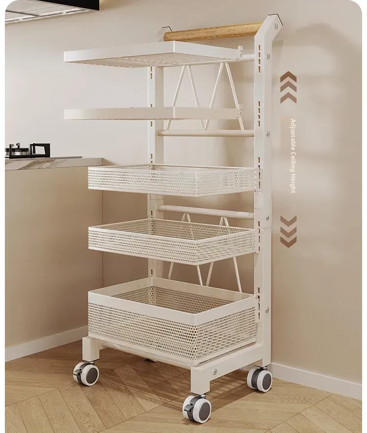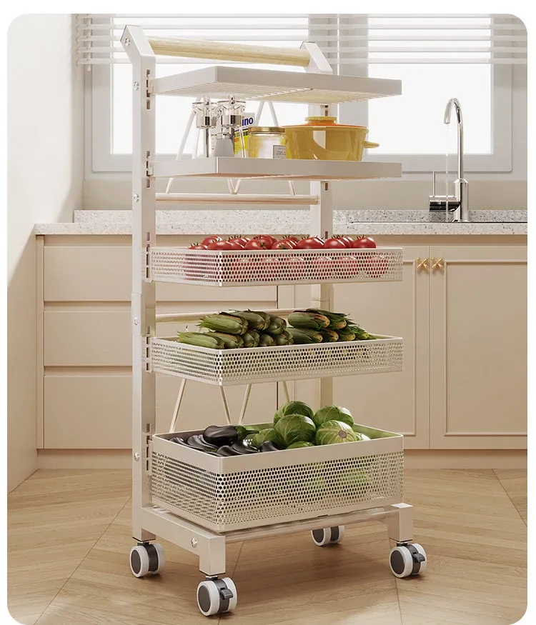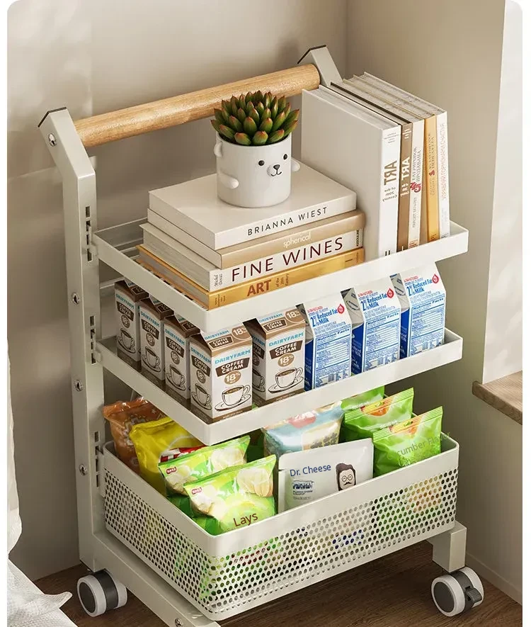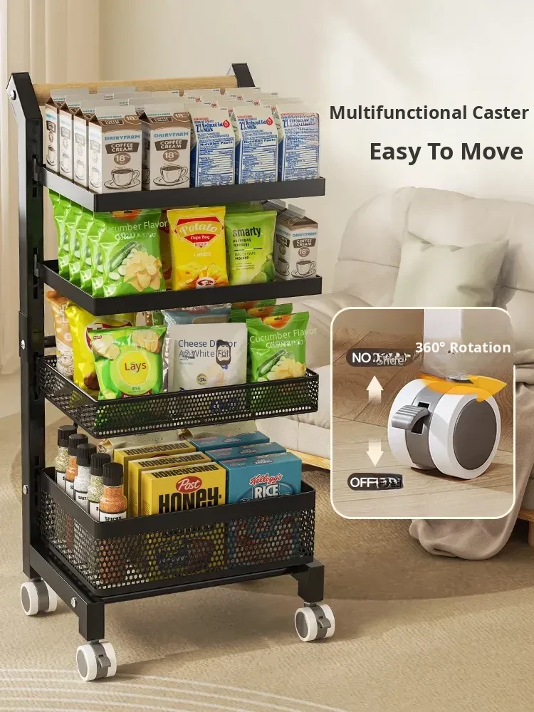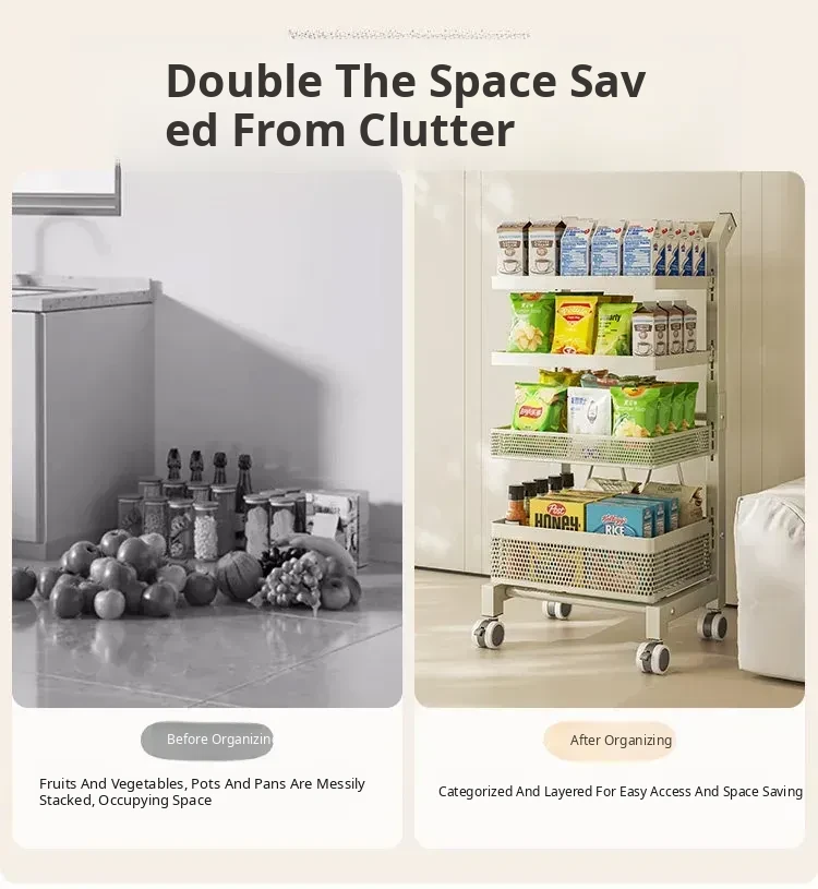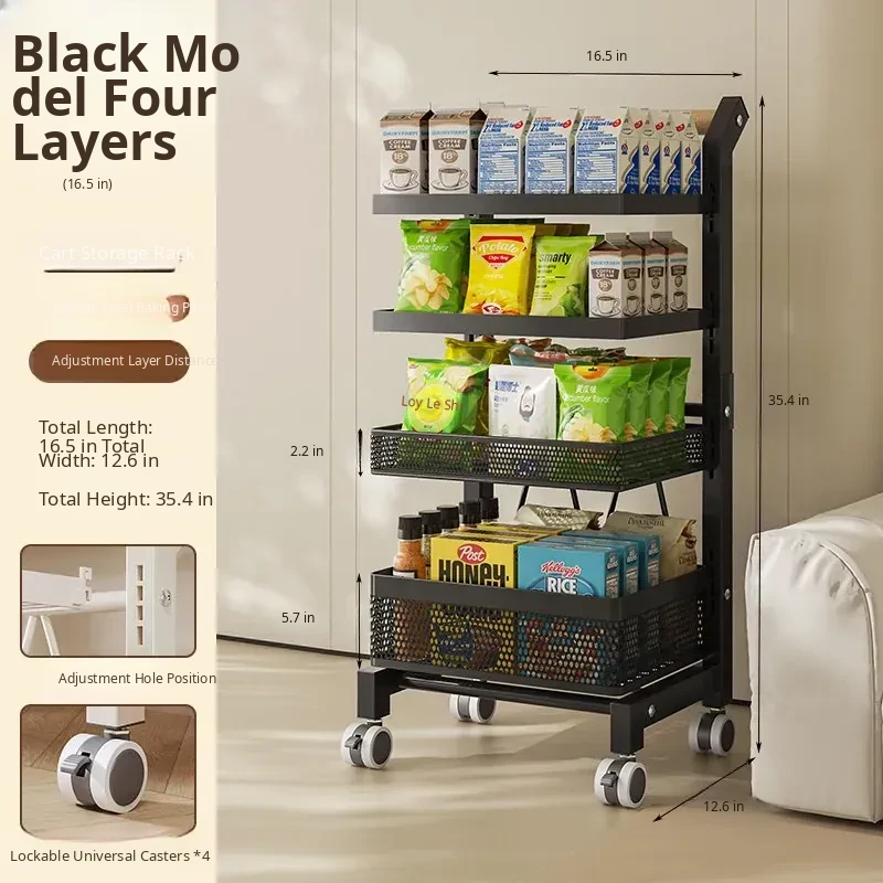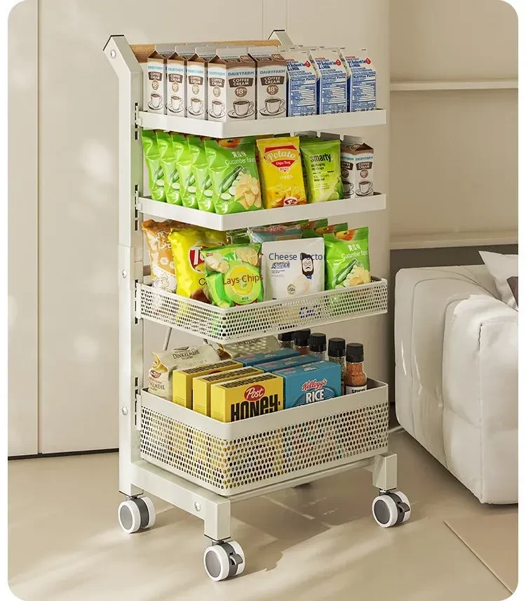 Multi-Layer Rolling Cart - Versatile Storage Rack for Snacks, Toys, and More | Space-Saving Floor Storage Solution for Bedroom and Living Room | Large Capacity Mobile Organizer Cabinet