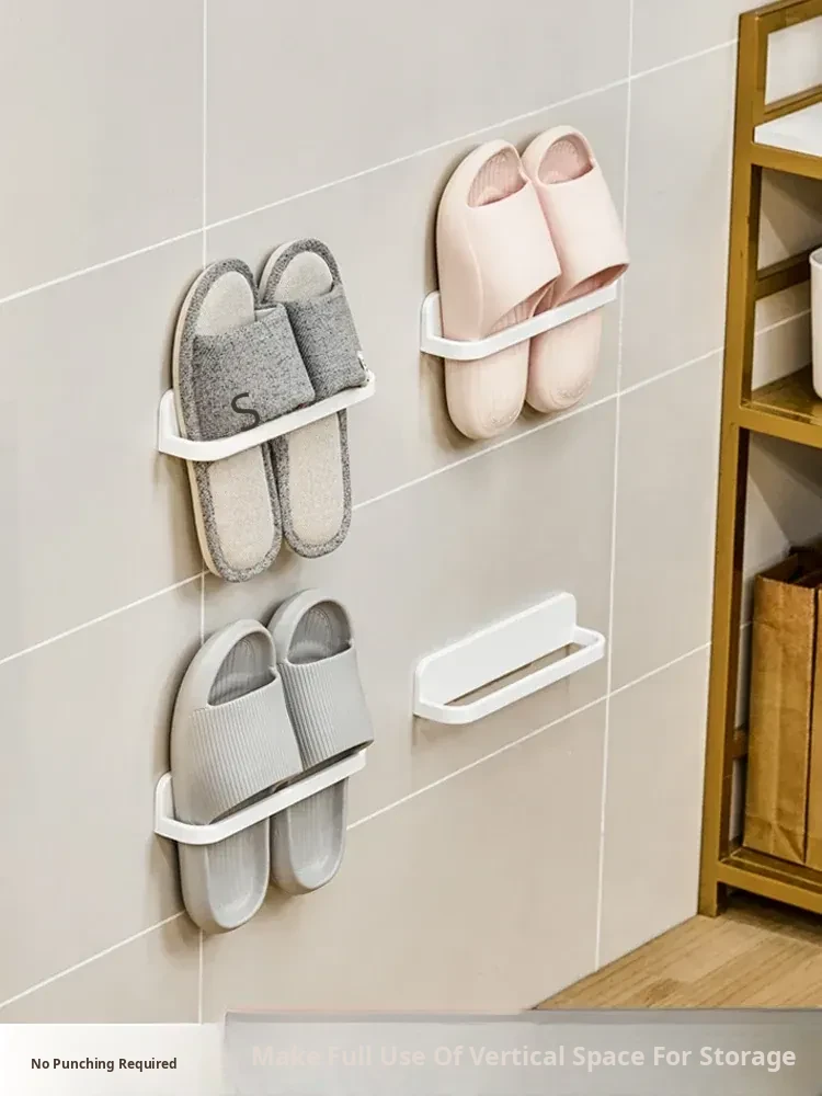 No-Drill Bathroom Slipper Rack - Space-Saving Shoe Organizer with Drainage, Wall-Mounted Storage Solution for Your Toilet and Bathroom Essentials