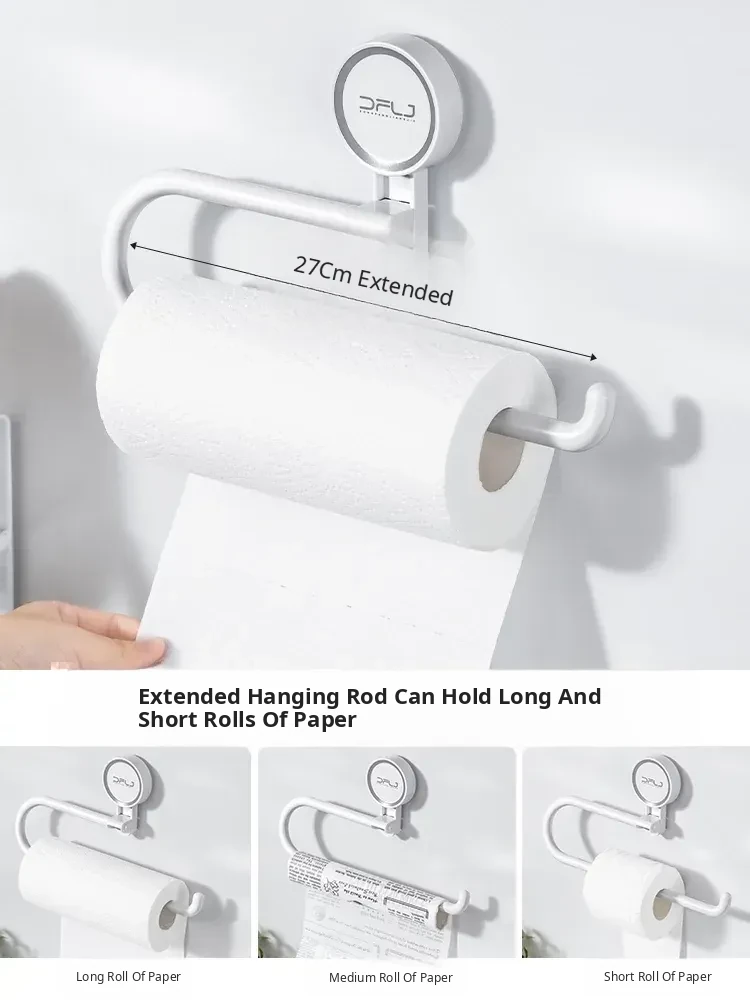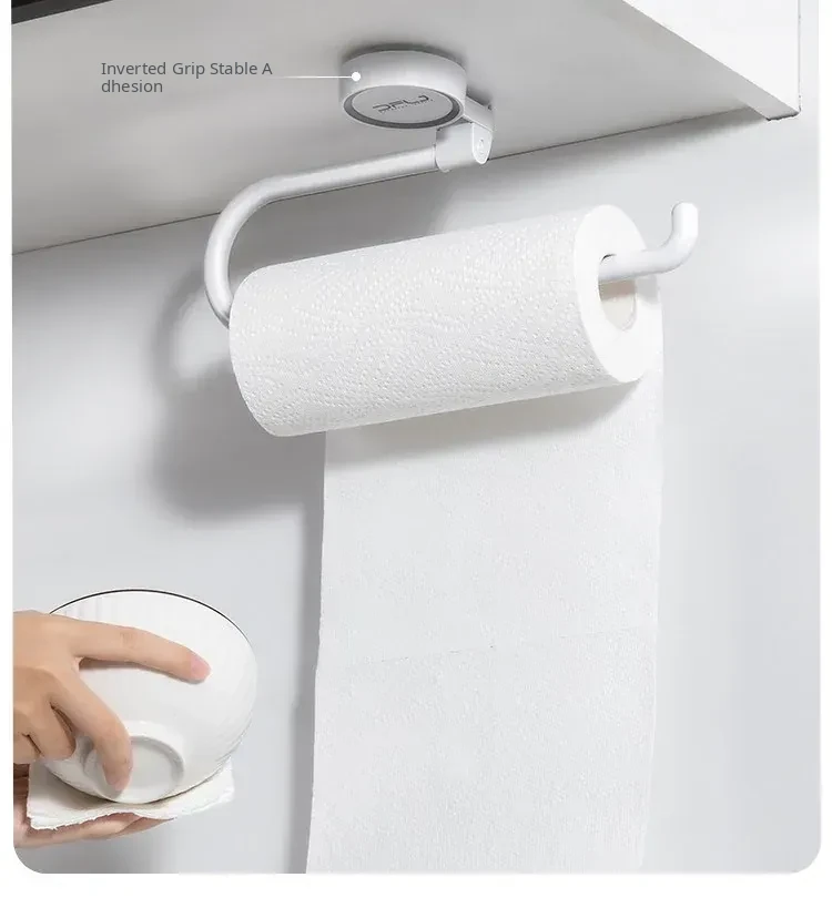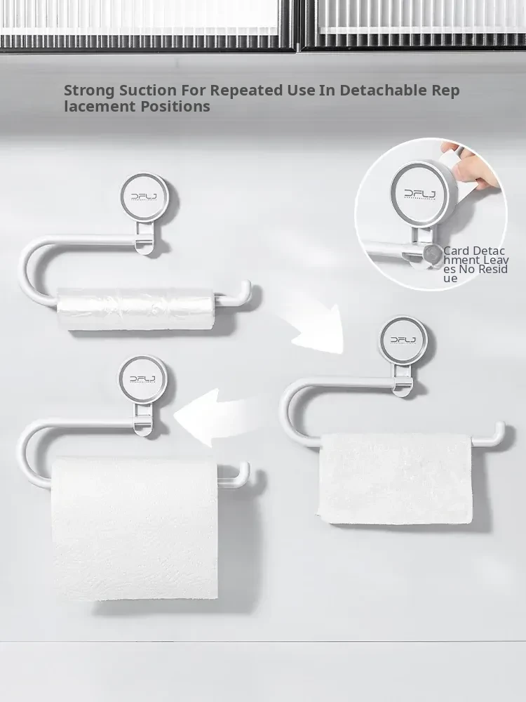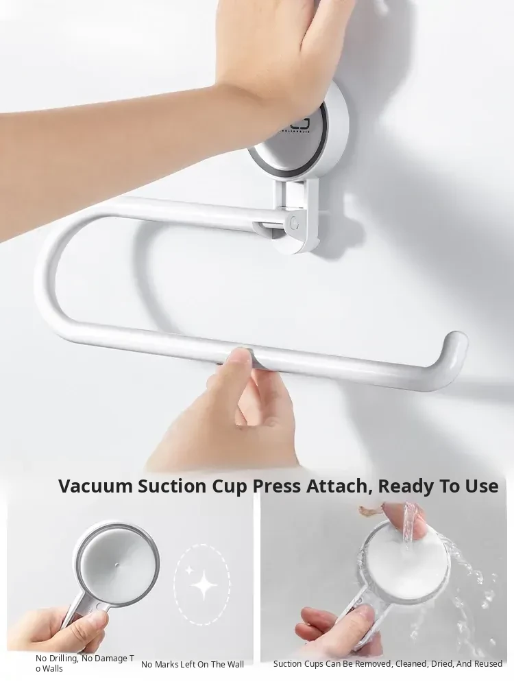 No-Drill Suction Cup Multi-Functional Kitchen Organizer - Cling Film and Paper Roll Holder, Wall-Mounted Dishcloth and Tissue Rack for Space-Saving Convenience