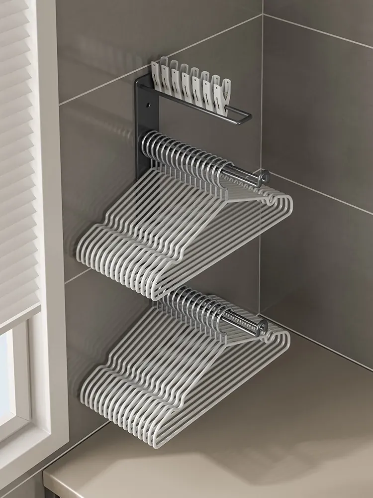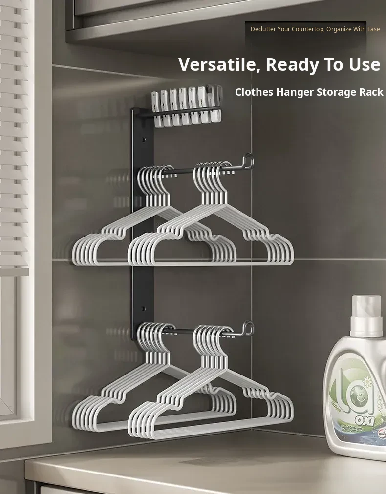 Space-Saving Iron Wall-Mounted Hanger Organizer - No Drilling Required! Ideal for Balconies, Perfect for Storing Clips and Maximizing Your Living Space!
