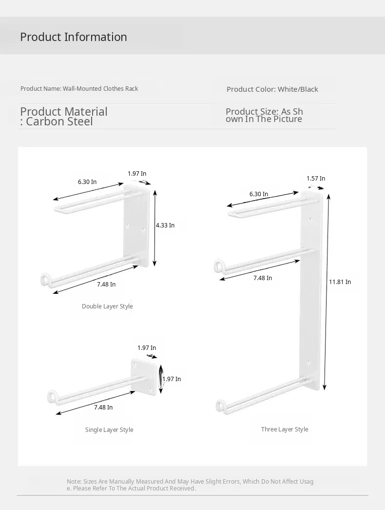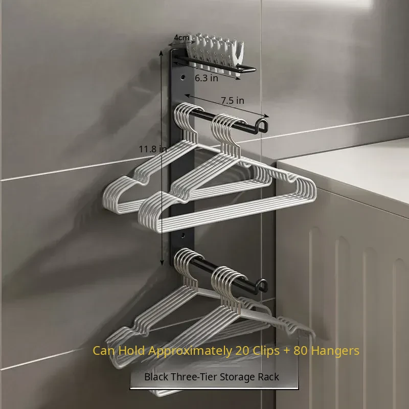 Wall-Mounted Clothes Hanger Storage Rack [Three Bars-Black]
